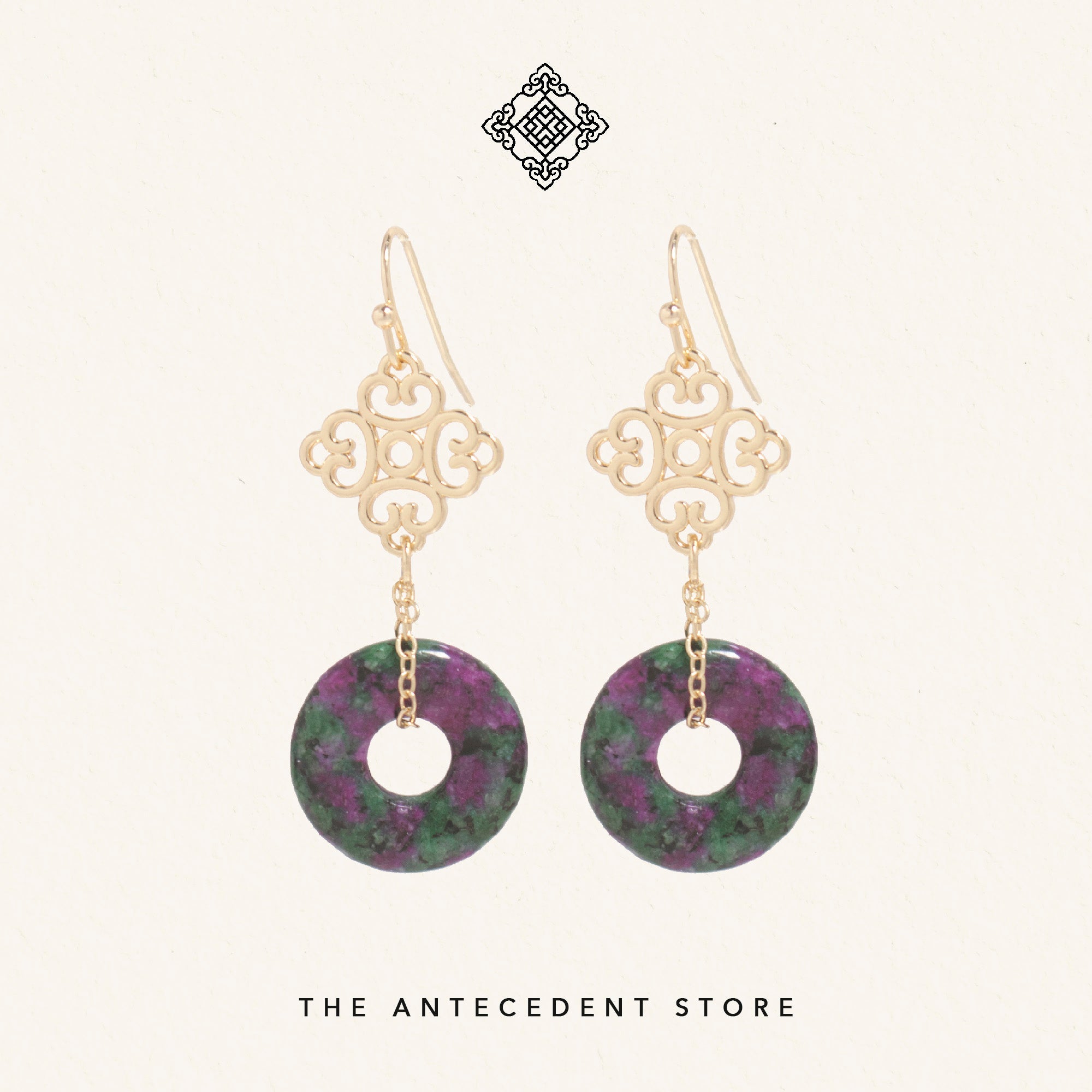 Celebrate meaningful elegance with THE ANTECEDENT STORE 【 如意 】Auspicious Motif Tigers Eye Earrings, featuring four intricate longevity lock motifs and a carved Tiger’s Eye crystal in the symbolic 平安扣 shape. This refined design blends traditional symbolism with contemporary style, offering both visual appeal and a sense of protection and prosperity.Versatile enough for both everyday wear and special occasions, these earrings pair beautifully with both modern and traditional outfits. Their unique motif and natural stone make them a thoughtful complement to your existing jewellery collection.