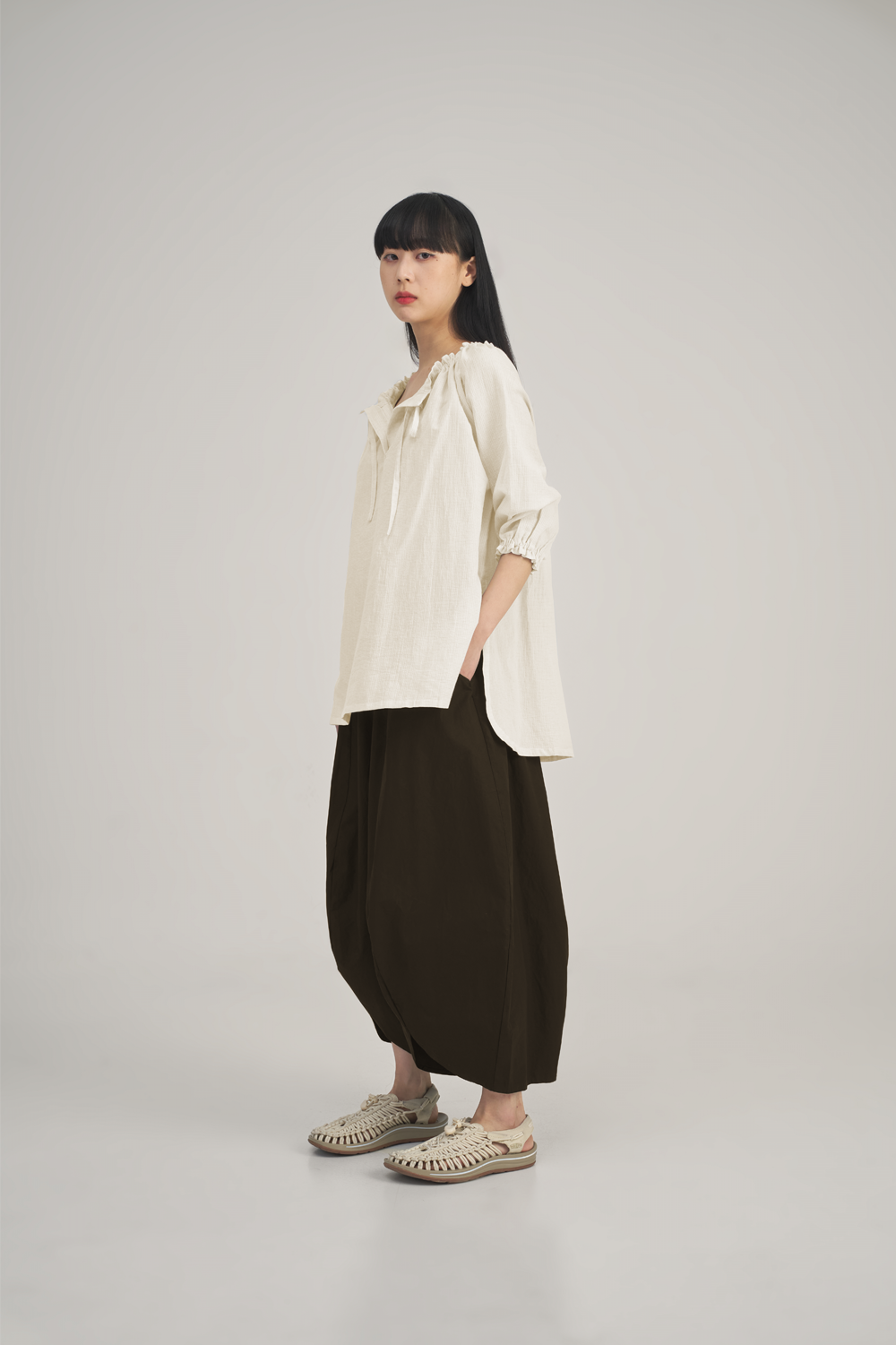 Elevate your wardrobe with the SABRINAGOH Analee Pants in Taupe, featuring a sculptural balloon silhouette and distinctive curved front cuffs. Crafted from breathable 100% cotton, these high-waisted pants offer both comfort and a striking, modern shape.Versatile enough for both casual and refined occasions, the Analee Pants pair beautifully with fitted knit tops or tailored blouses. Their unique silhouette adds interest to everyday basics and complements a range of existing wardrobe staples.