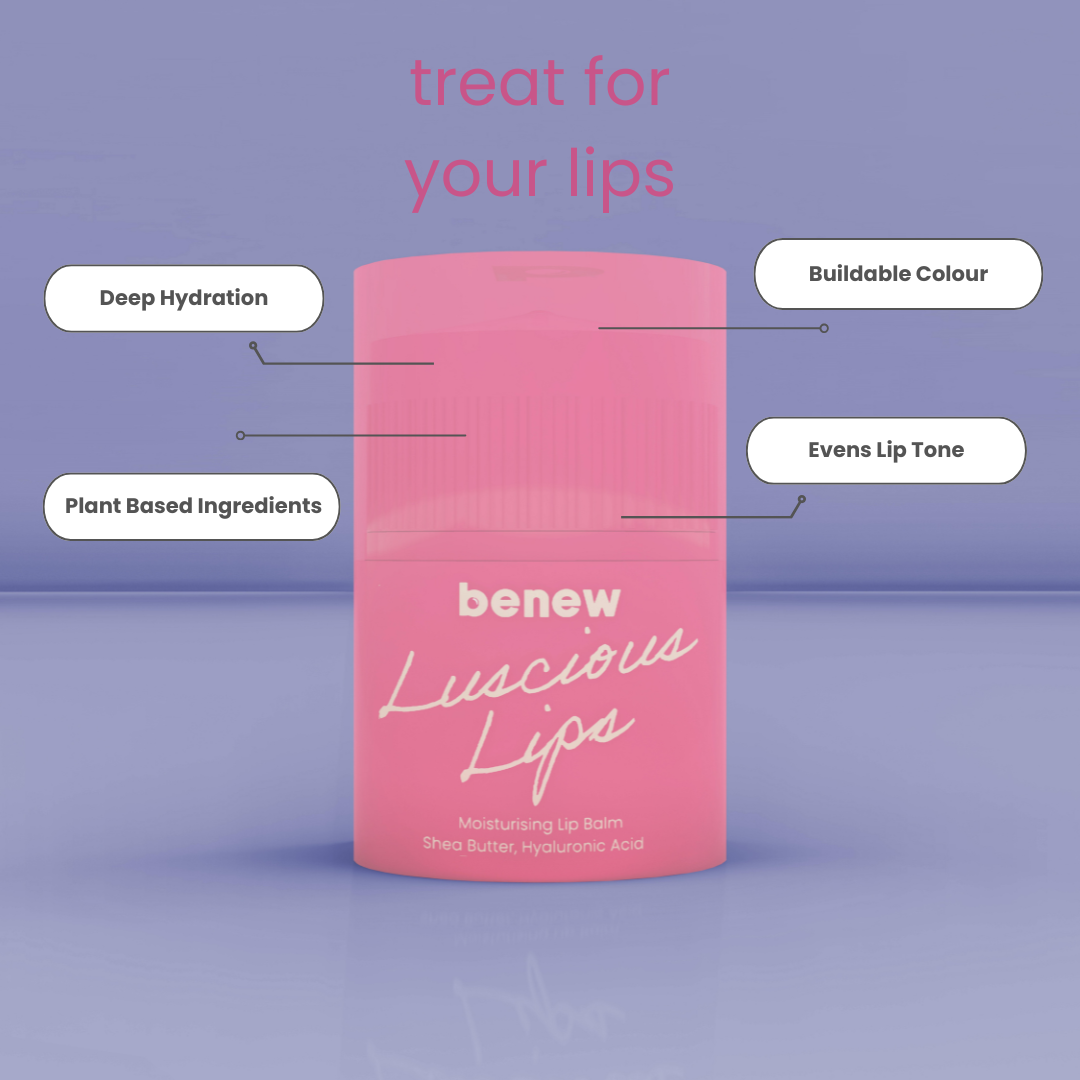 Experience daily hydration and revitalisation with BENEW Luscious Lips, a nourishing lip treatment designed to enhance softness and promote a healthy, vibrant appearance. Infused with Glutathione, this formula helps boost elasticity and calms irritation, leaving lips smoother and more supple.Perfect for everyday use, BENEW Luscious Lips can be worn alone for a natural sheen or layered under your favourite lipstick for added moisture. Its versatile formula complements any beauty routine, ensuring your lips stay comfortable in any setting.