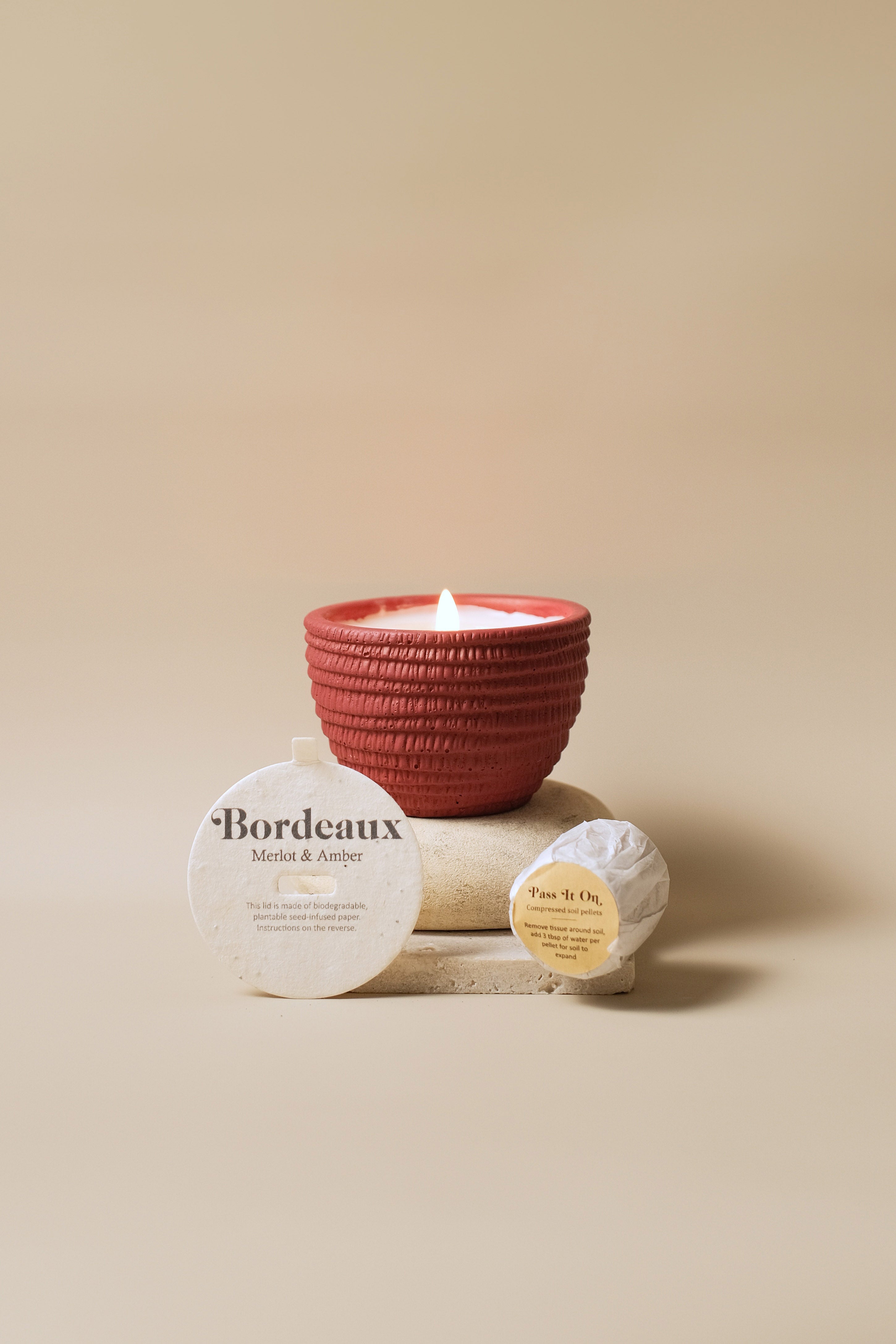 - Candle lid made of biodegradable, plantable seed embedded paper.