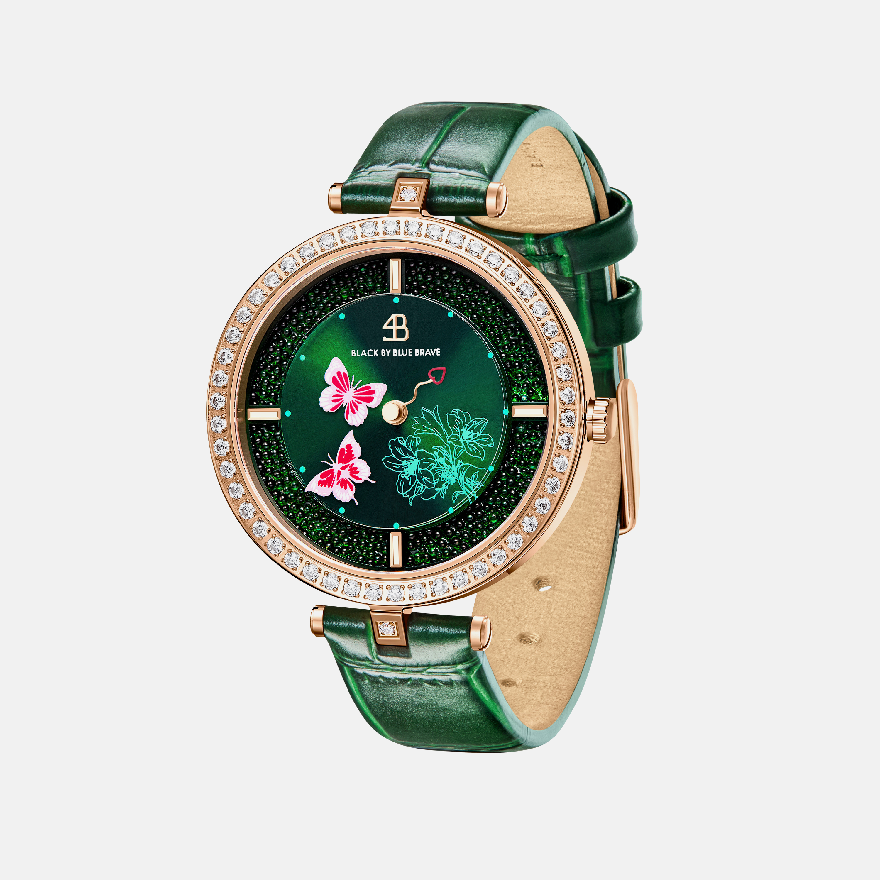 Celebrate the enduring power of love with the Butterfly Lovers Watch (34MM) by BLACK BY BLUE BRAVE. Inspired by the legendary tale of "Liang Zhu," this timepiece features delicate butterfly motifs and a heart-shaped hour hand, blending classic romance with contemporary elegance. The unique design transforms the minute and second hands into graceful butterflies, symbolising transformation and eternal connection.Versatile enough for both everyday wear and special occasions, this watch pairs beautifully with both modern and traditional ensembles. Its refined aesthetic complements your existing jewellery and accessories, making it a timeless addition to any collection.