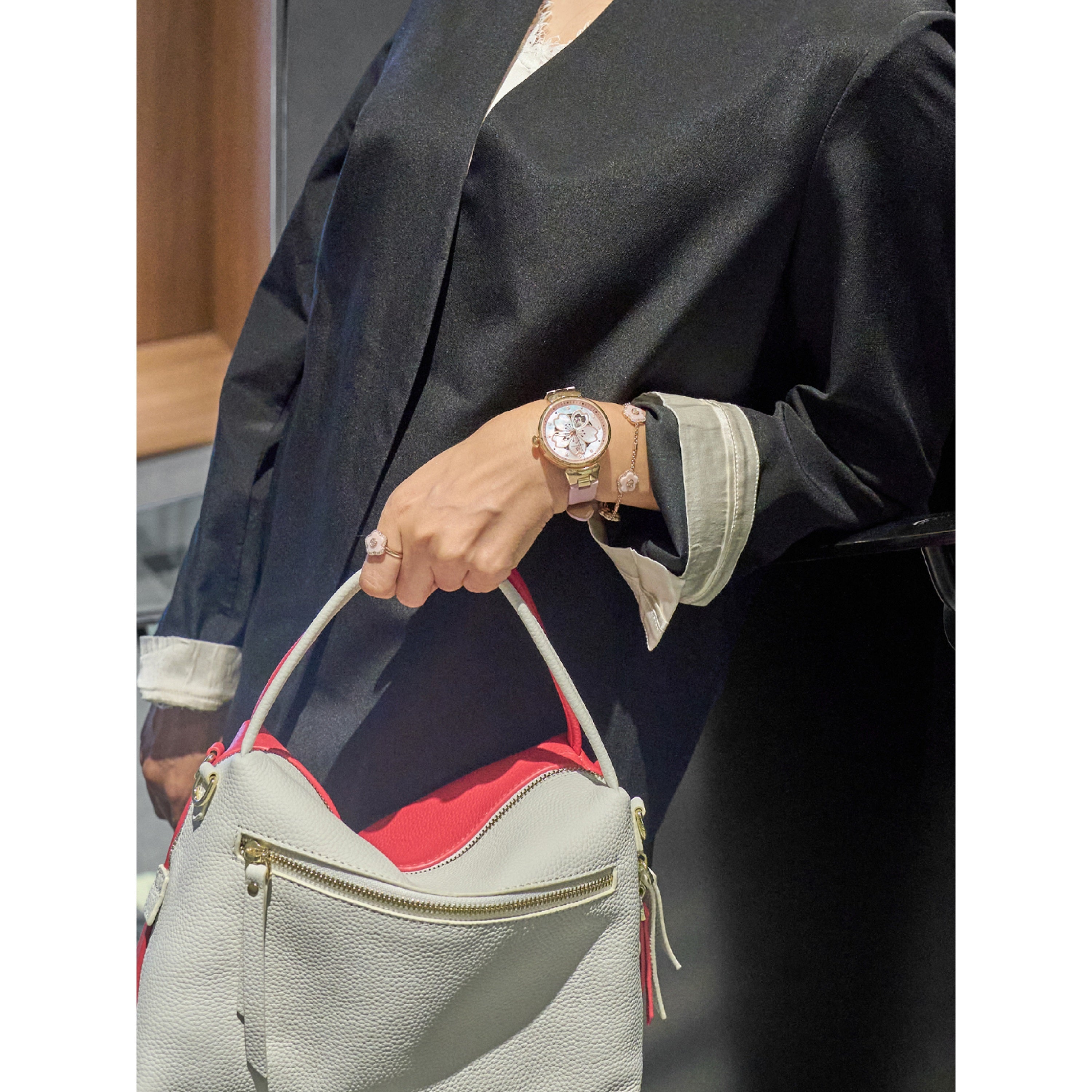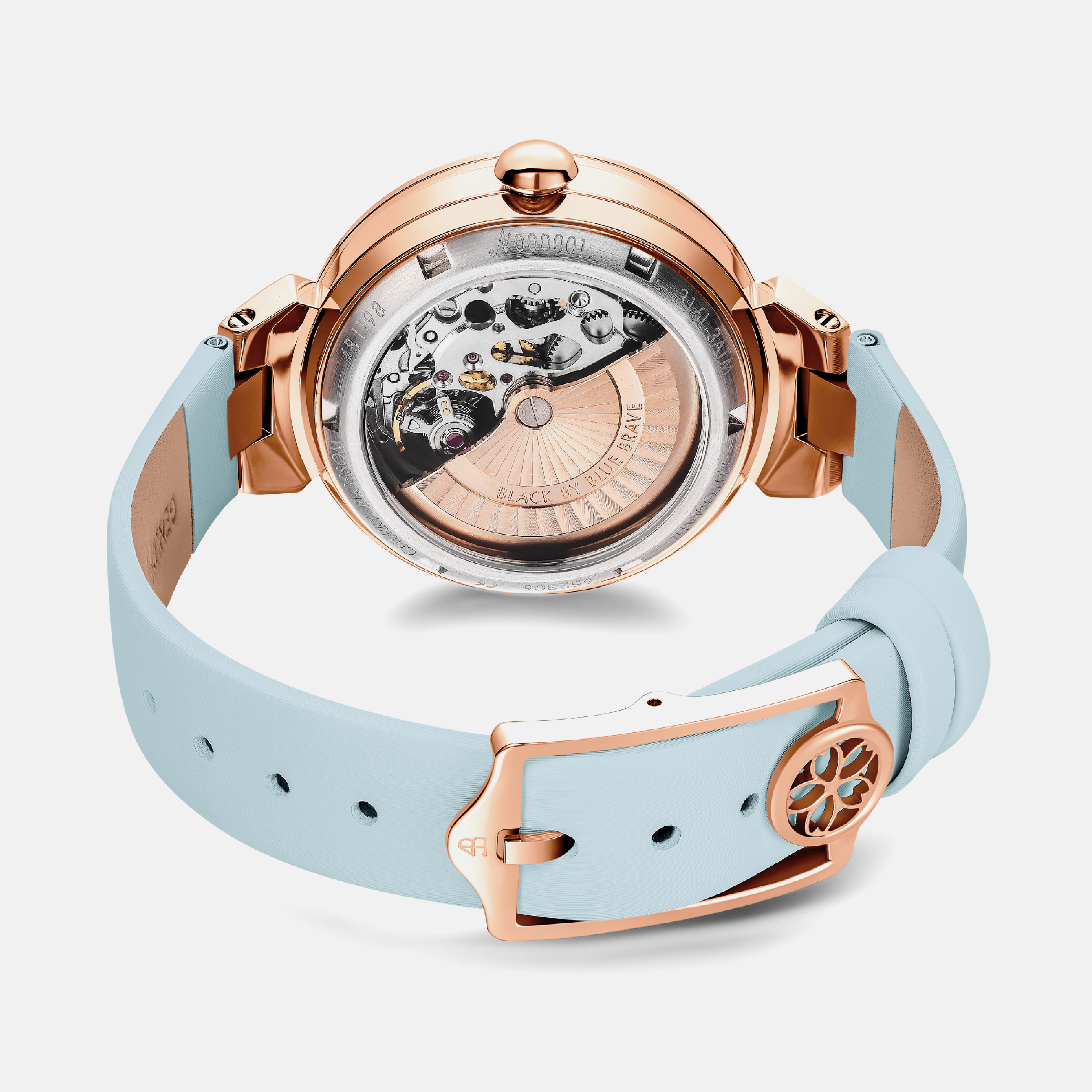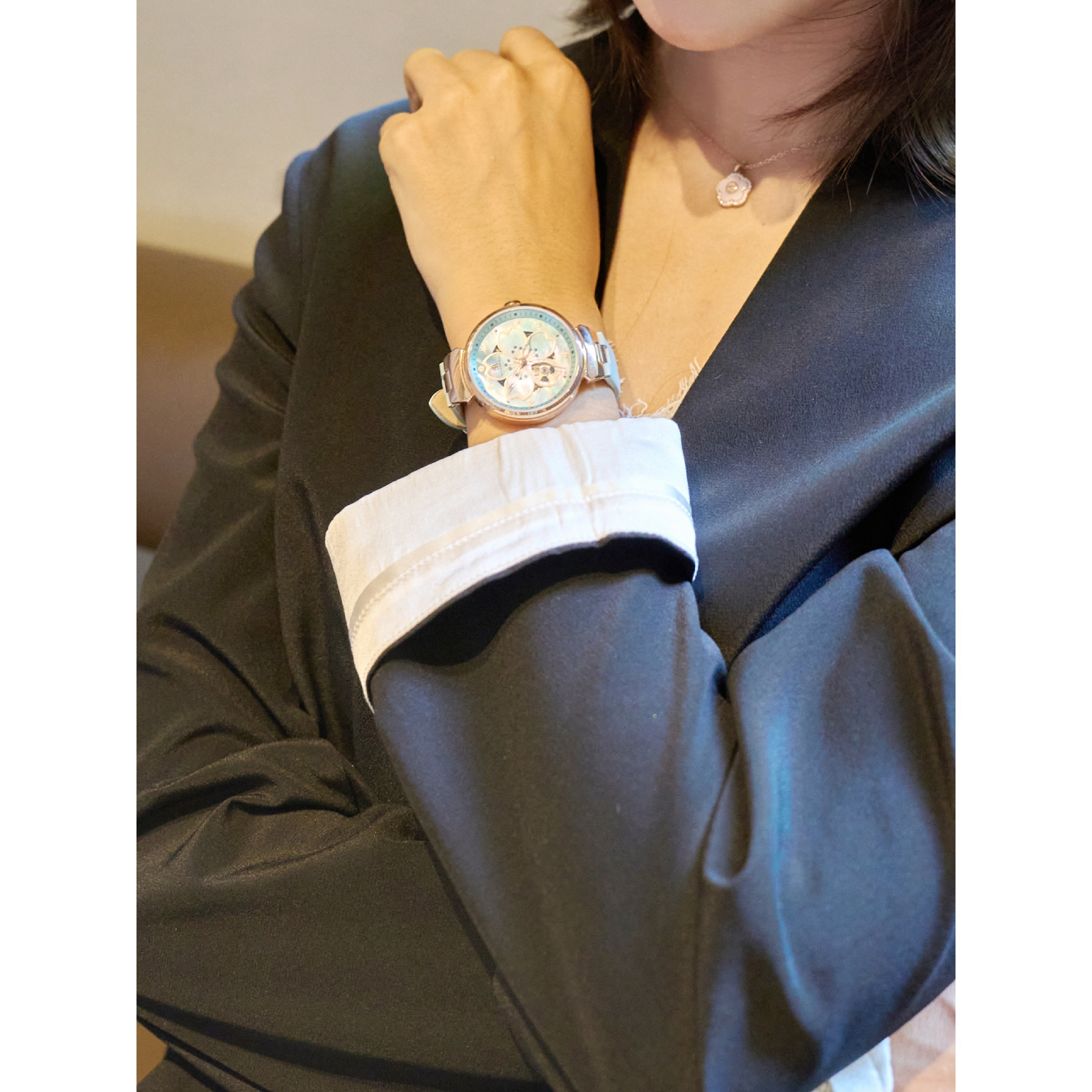 The Cherry Blossom Automatic Blue Watch 36mm by BLACK BY BLUE BRAVE is a refined timepiece that captures the fleeting beauty of cherry blossoms through its signature petal motif and mother-of-pearl dial. Distinctive snowflake-shaped indices and a hollow petal window reveal the intricate automatic movement, blending artistry with precision for a truly elegant wristwatch experience.Versatile enough for both everyday wear and special occasions, this watch pairs effortlessly with both casual and formal attire. Its timeless design complements existing accessories, adding a sophisticated touch to any collection.