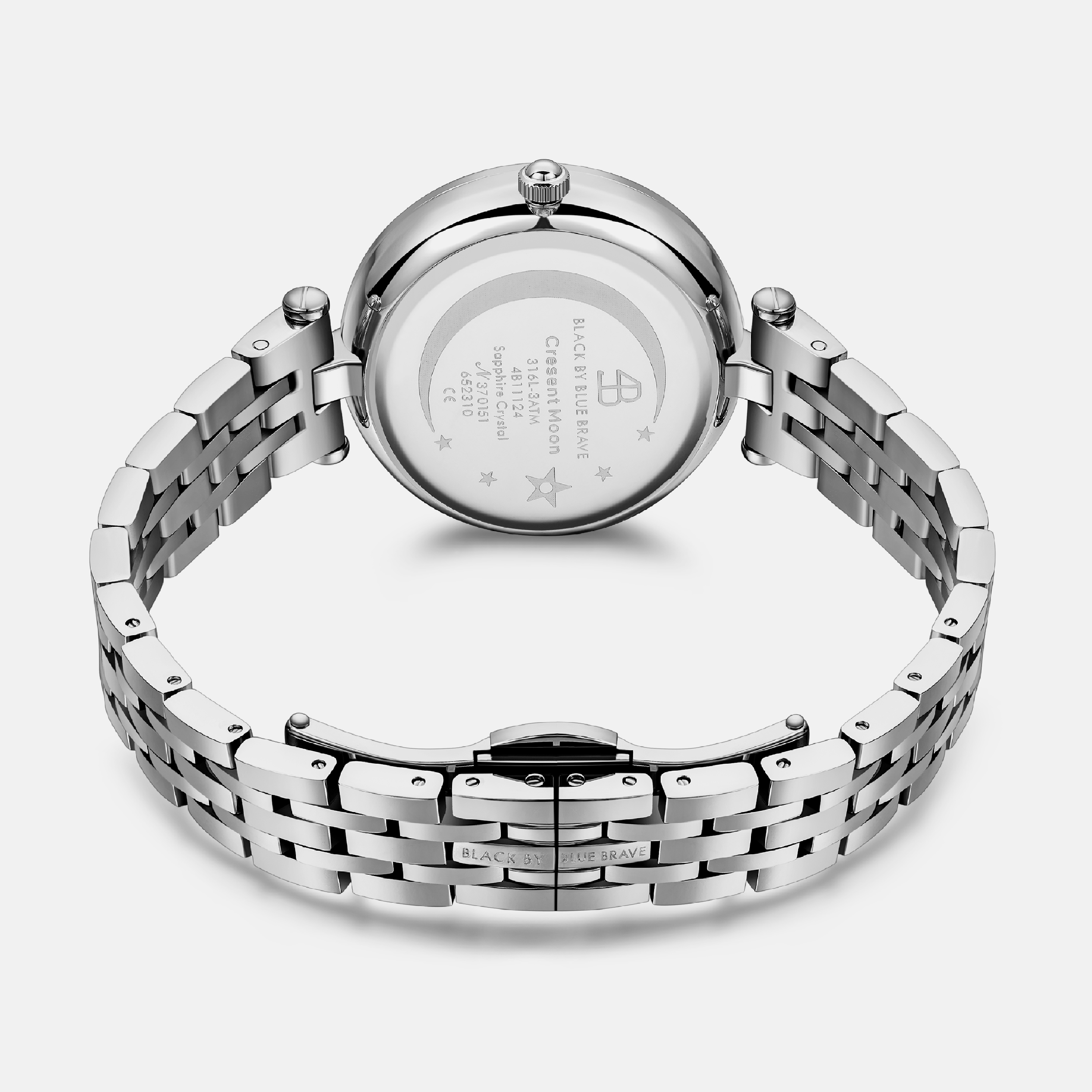Crafted from 316L stainless steel and protected by a sapphire crystal with AR coating, the Crescent Moon Watch offers lasting durability. The Miyota 2039 quartz movement ensures reliable timekeeping for everyday wear.