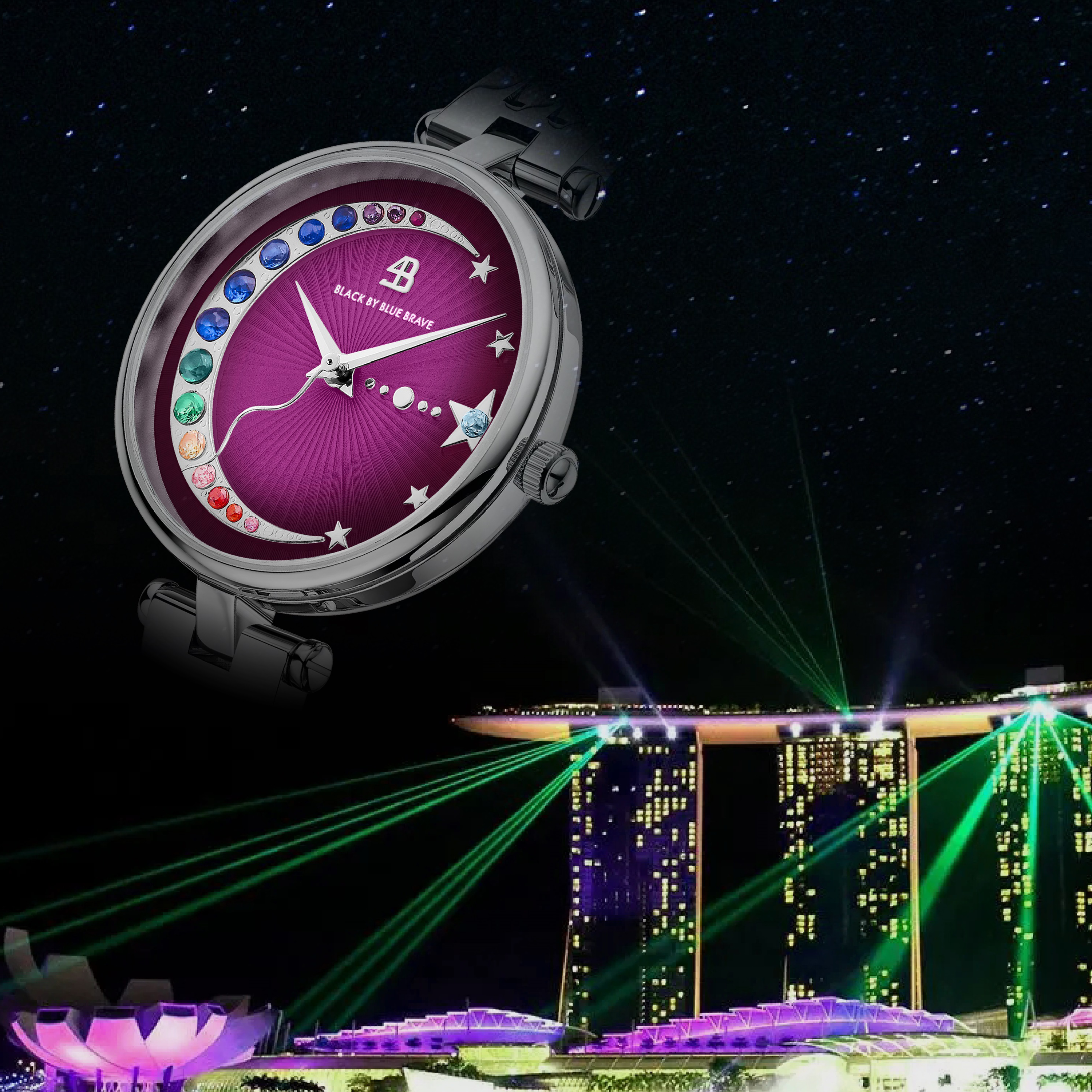 The Crescent Moon Watch (32MM) by BLACK BY BLUE BRAVE is a refined timepiece that artfully celebrates Singapore’s heritage. Inspired by the national flag, its dial features a crescent moon and five stars, blending cultural symbolism with elegant design for a meaningful accessory.Versatile for both formal and casual occasions, this watch comes with interchangeable leather and steel straps to suit your style. Its distinctive look complements existing collections, making it a thoughtful addition for those who appreciate unique, story-driven pieces.