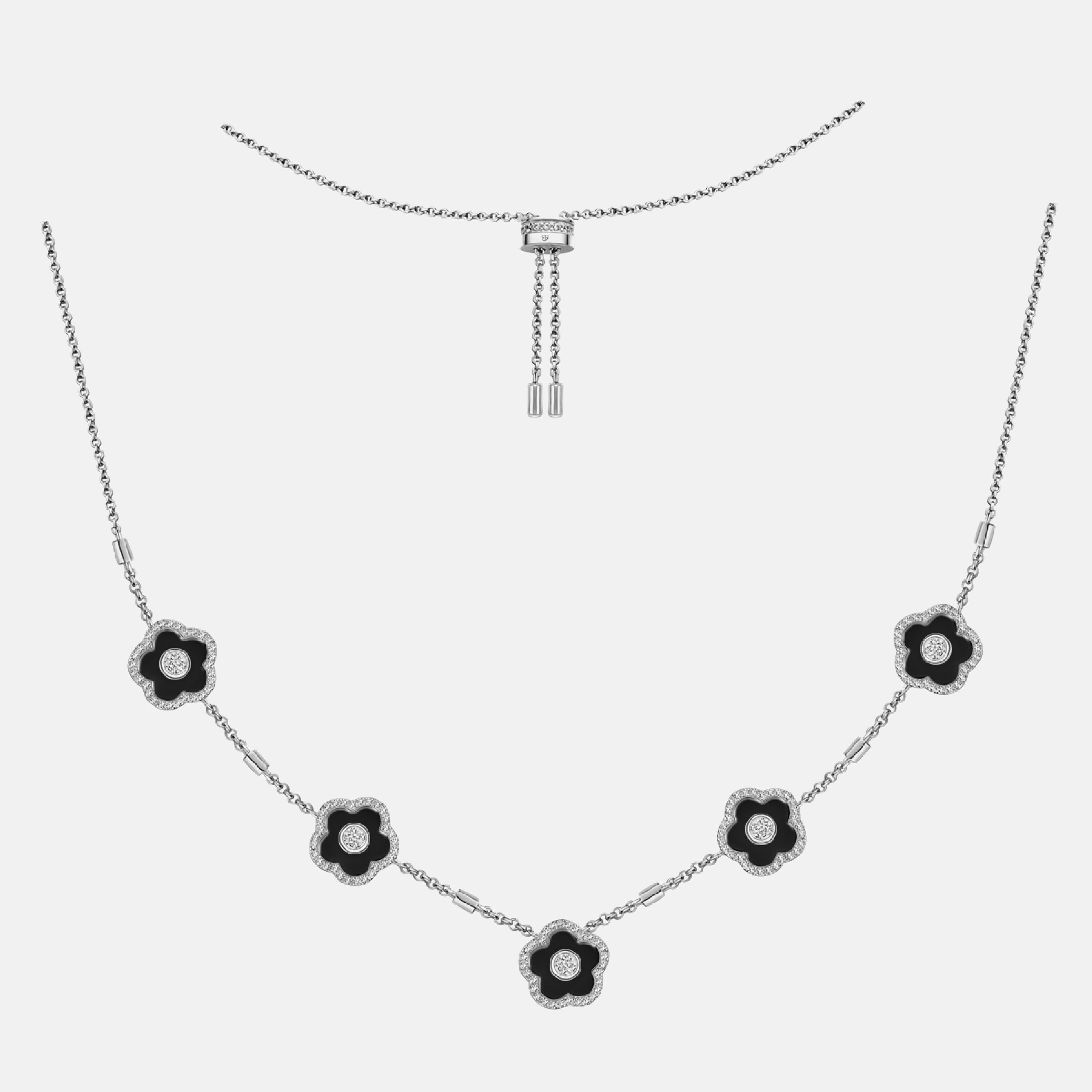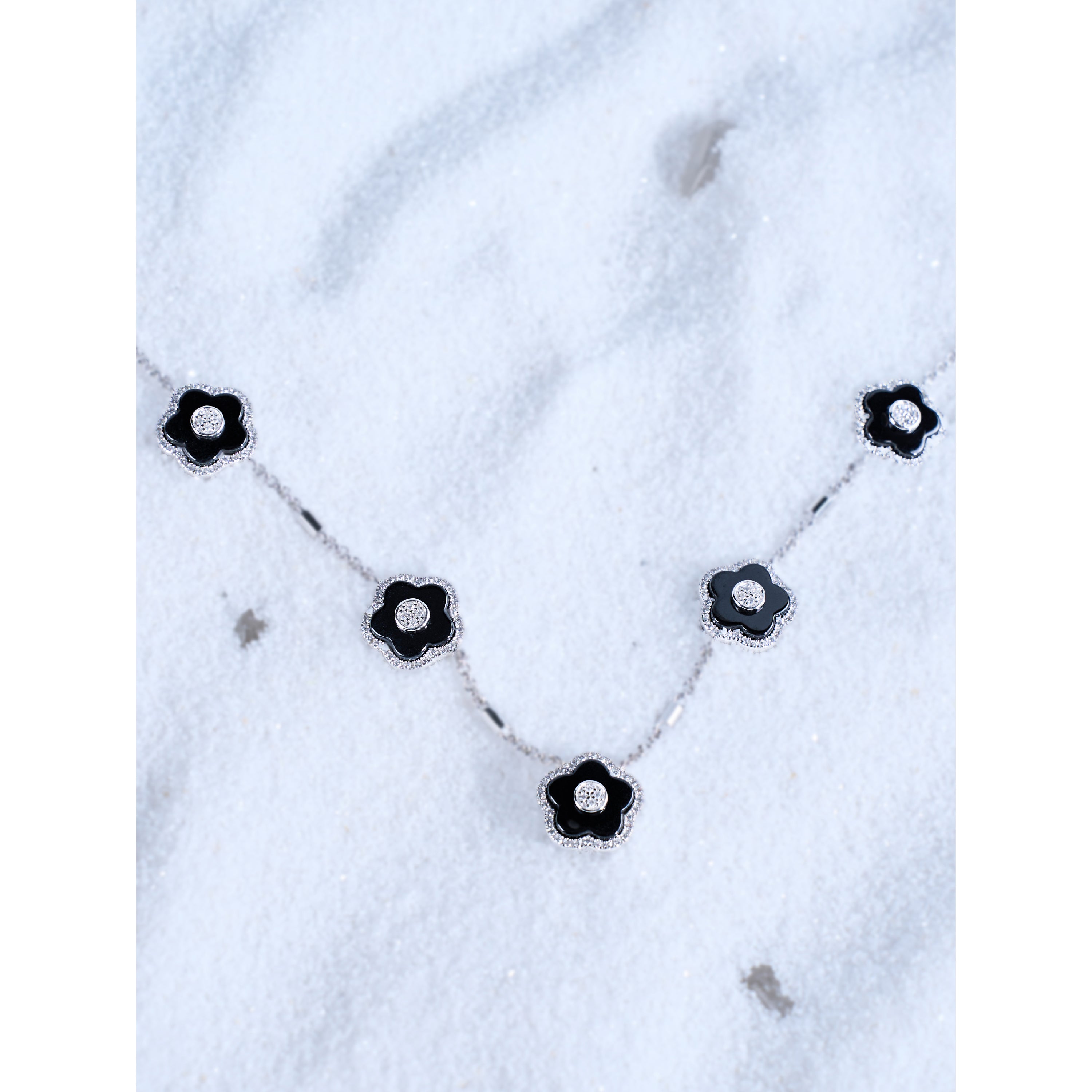 BLACK BY BLUE BRAVE | Classic Flower Necklace Brass 18k Silver Plating & Black Ceramic 420-650mm With Sliding Clasp