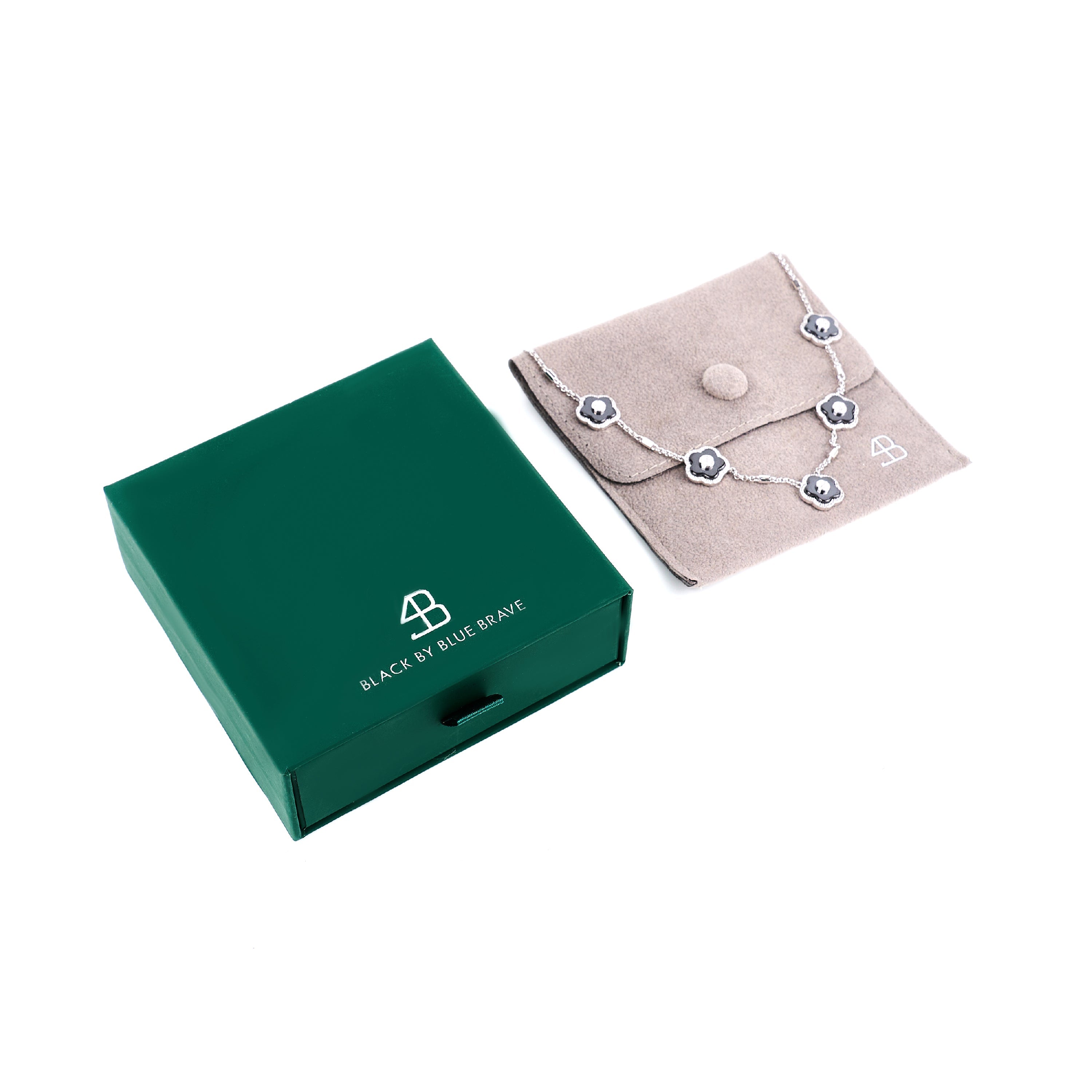 Elevate your style with the Classic Flower Necklace from BLACK BY BLUE BRAVE, a refined piece that blends 18k silver plating over brass with striking black ceramic accents. The sliding clasp allows for effortless adjustment, ensuring a perfect fit and a touch of modern sophistication to any ensemble.This versatile necklace transitions seamlessly from day to night, making it ideal for both casual outings and formal occasions. Layer it with other favourites or let it stand alone as a statement piece to complement your existing jewellery collection.