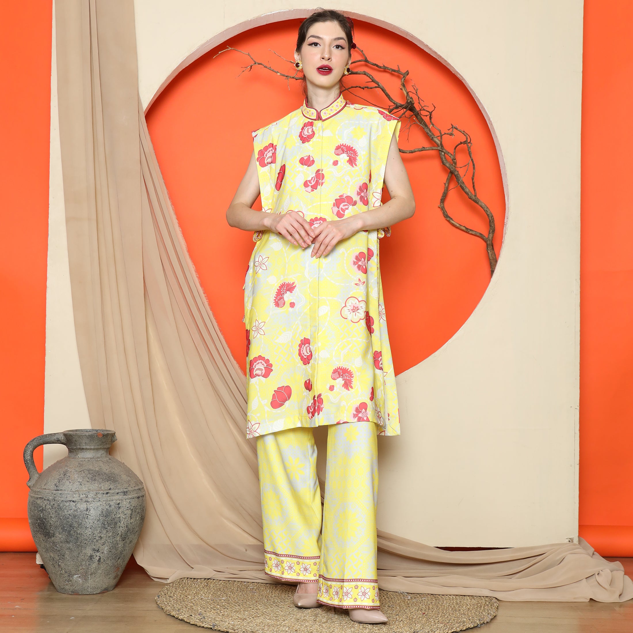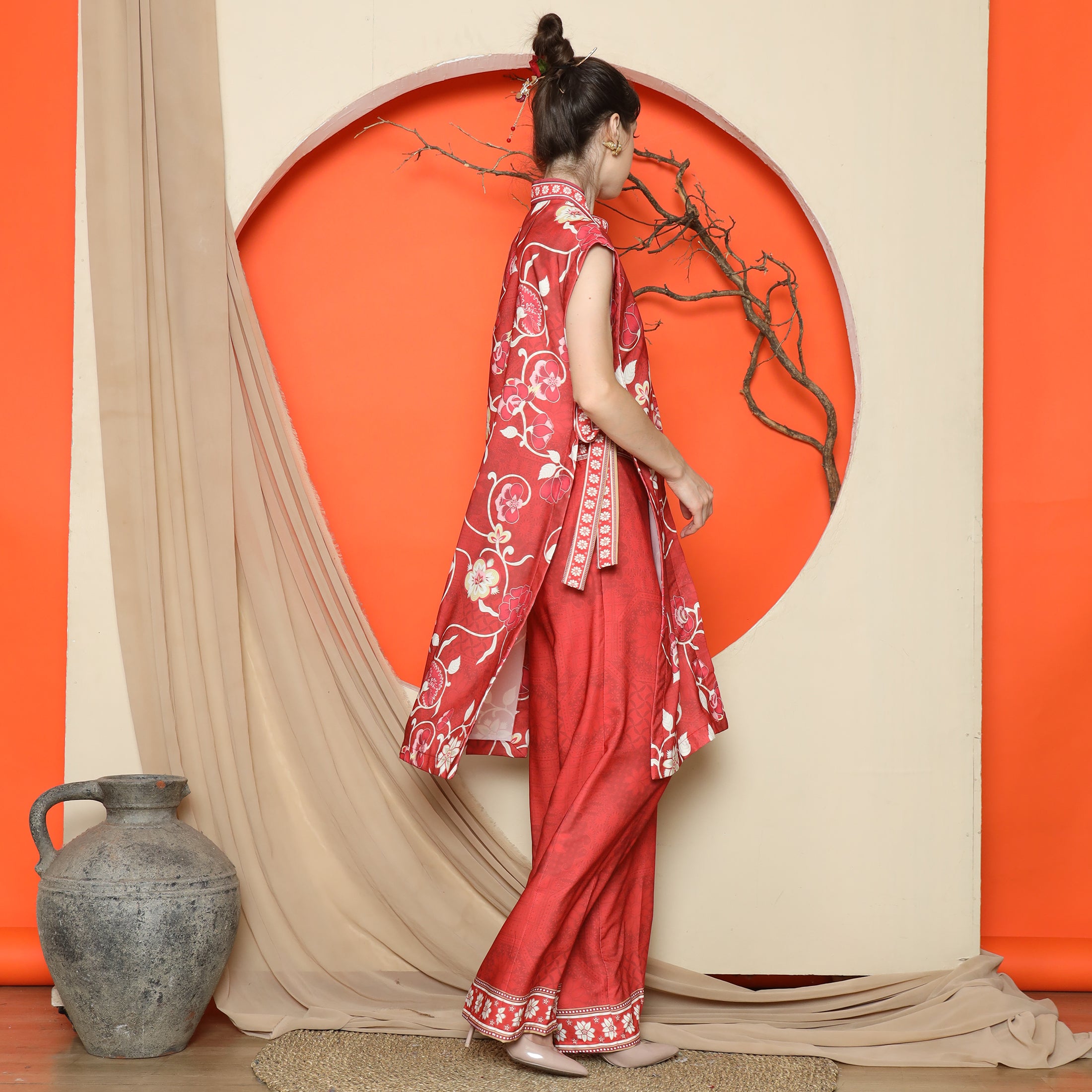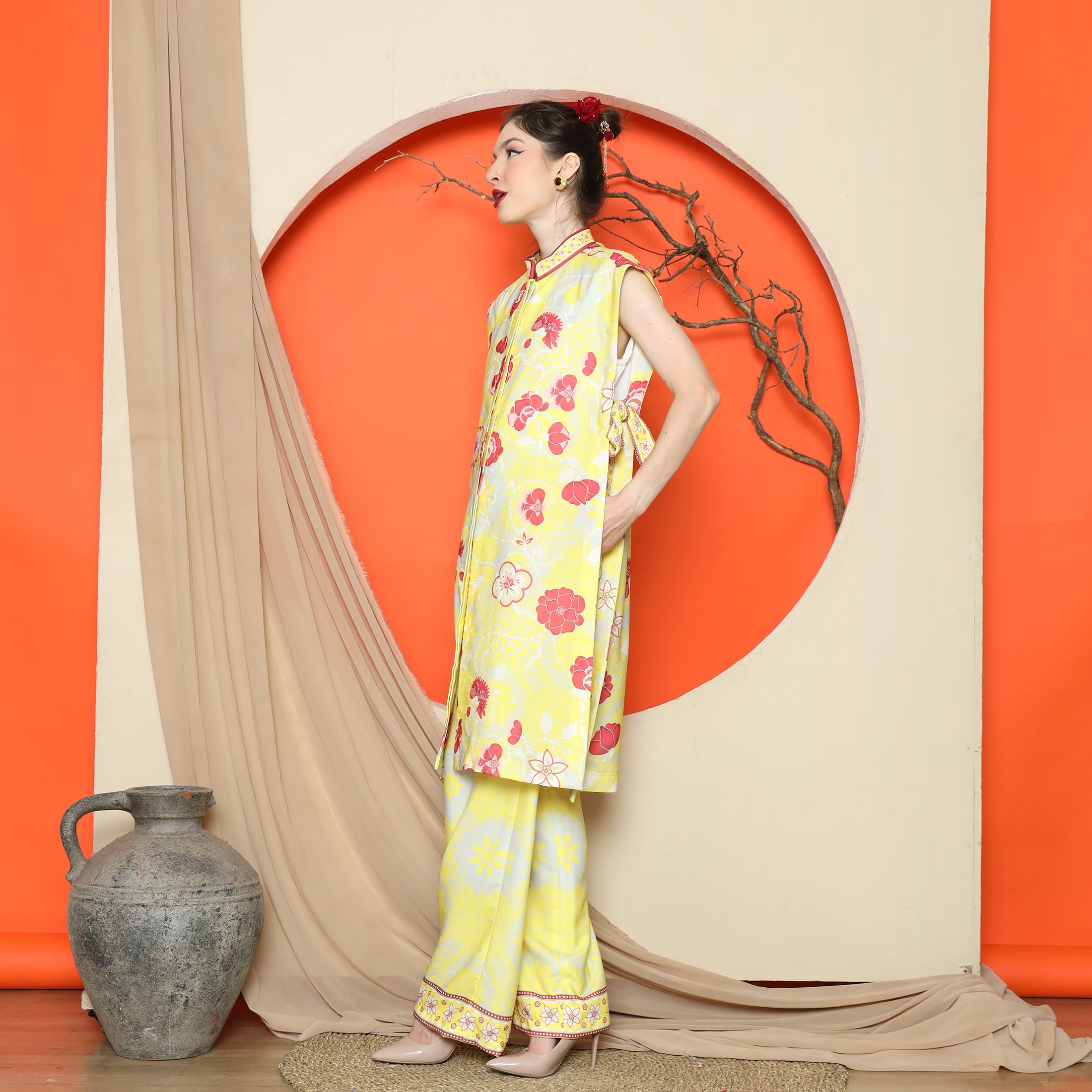 Elevate your wardrobe with the Flower Jacquard Kimono Vest from KANZI COLLECTION, featuring a vibrant floral jacquard pattern and a flattering side string detail for a flexible, free-size fit. The premium mixed satin material lends a refined sheen, making this piece a standout addition to any ensemble.Effortlessly layer this kimono vest over a simple dress for a polished look, or pair it with jeans and a tee for casual sophistication. Its versatile design complements both relaxed and semi-formal outfits, enhancing your existing wardrobe staples.