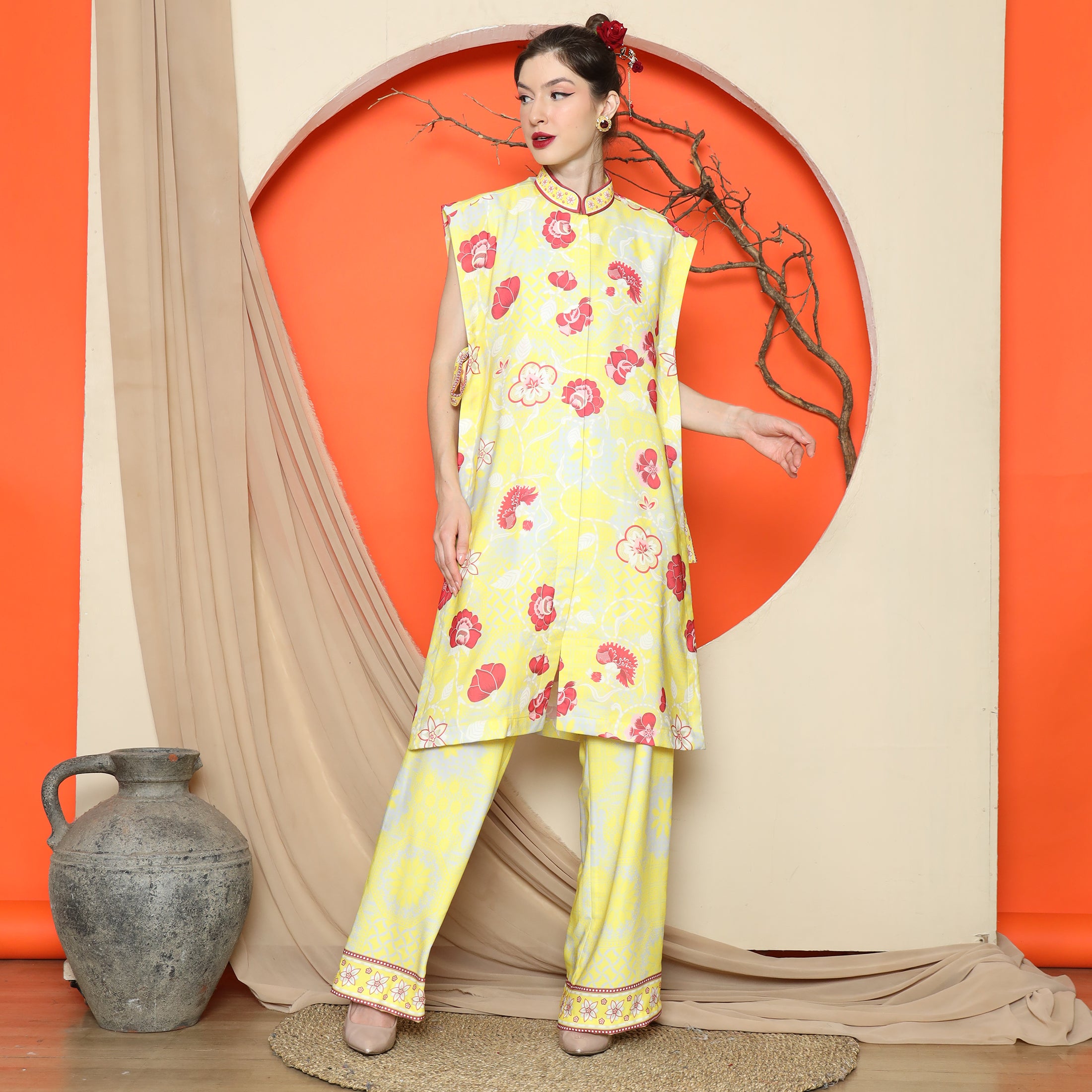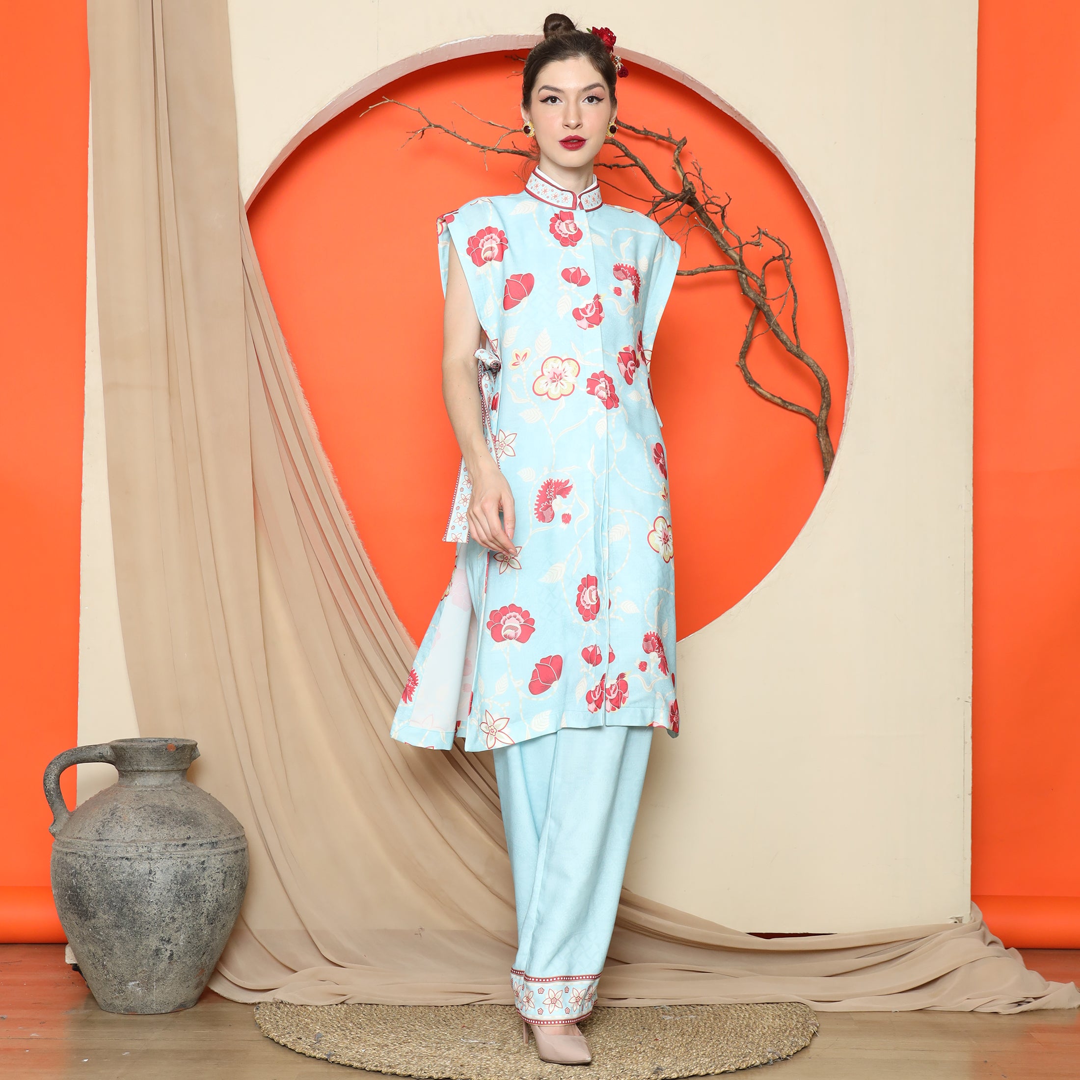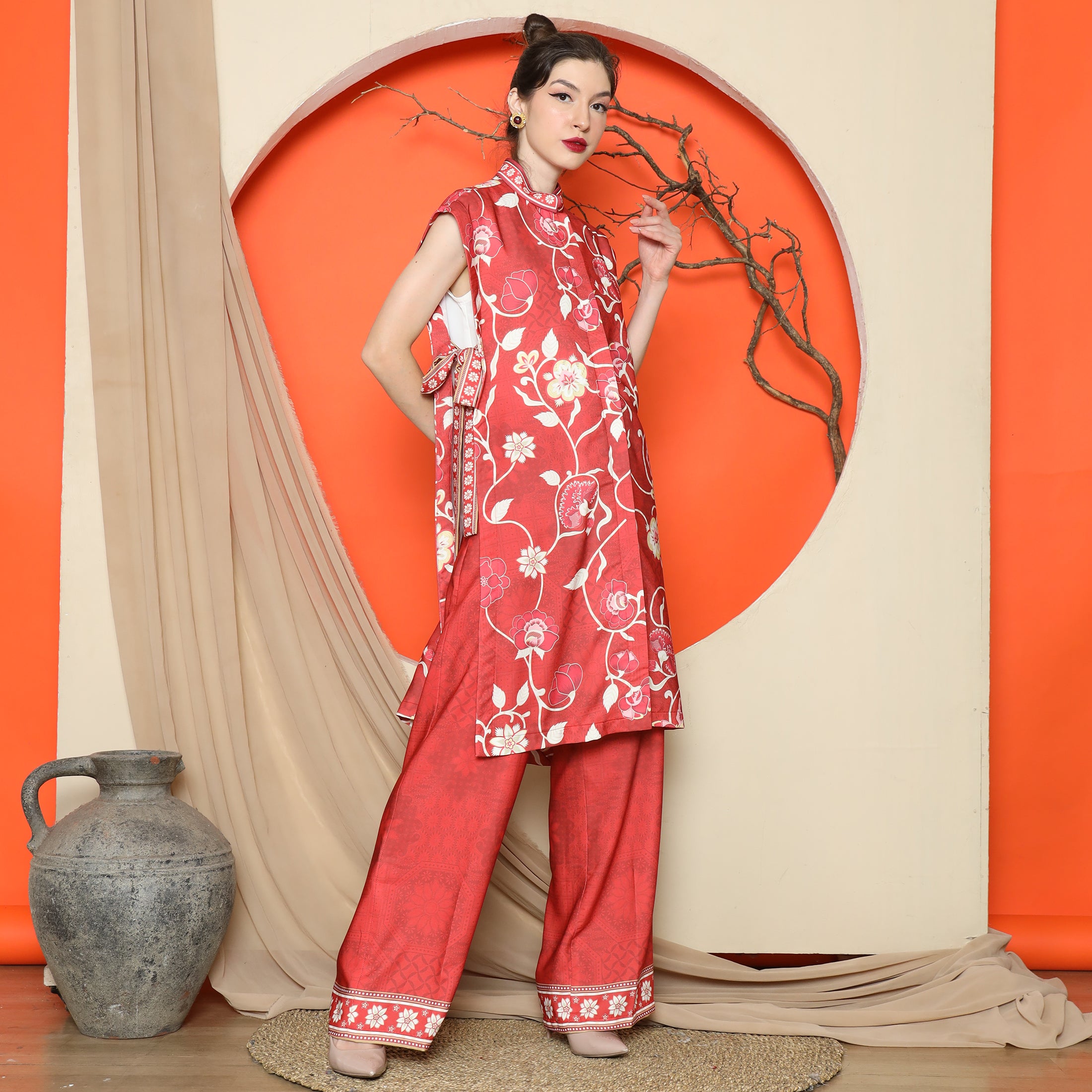 Elevate your wardrobe with the Flower Jacquard Kimono Vest from KANZI COLLECTION, featuring a vibrant floral jacquard pattern and a flattering side string detail for a flexible, free-size fit. The premium mixed satin material lends a refined sheen, making this piece a standout addition to any ensemble.Effortlessly layer this kimono vest over a simple dress for a polished look, or pair it with jeans and a tee for casual sophistication. Its versatile design complements both relaxed and semi-formal outfits, enhancing your existing wardrobe staples.