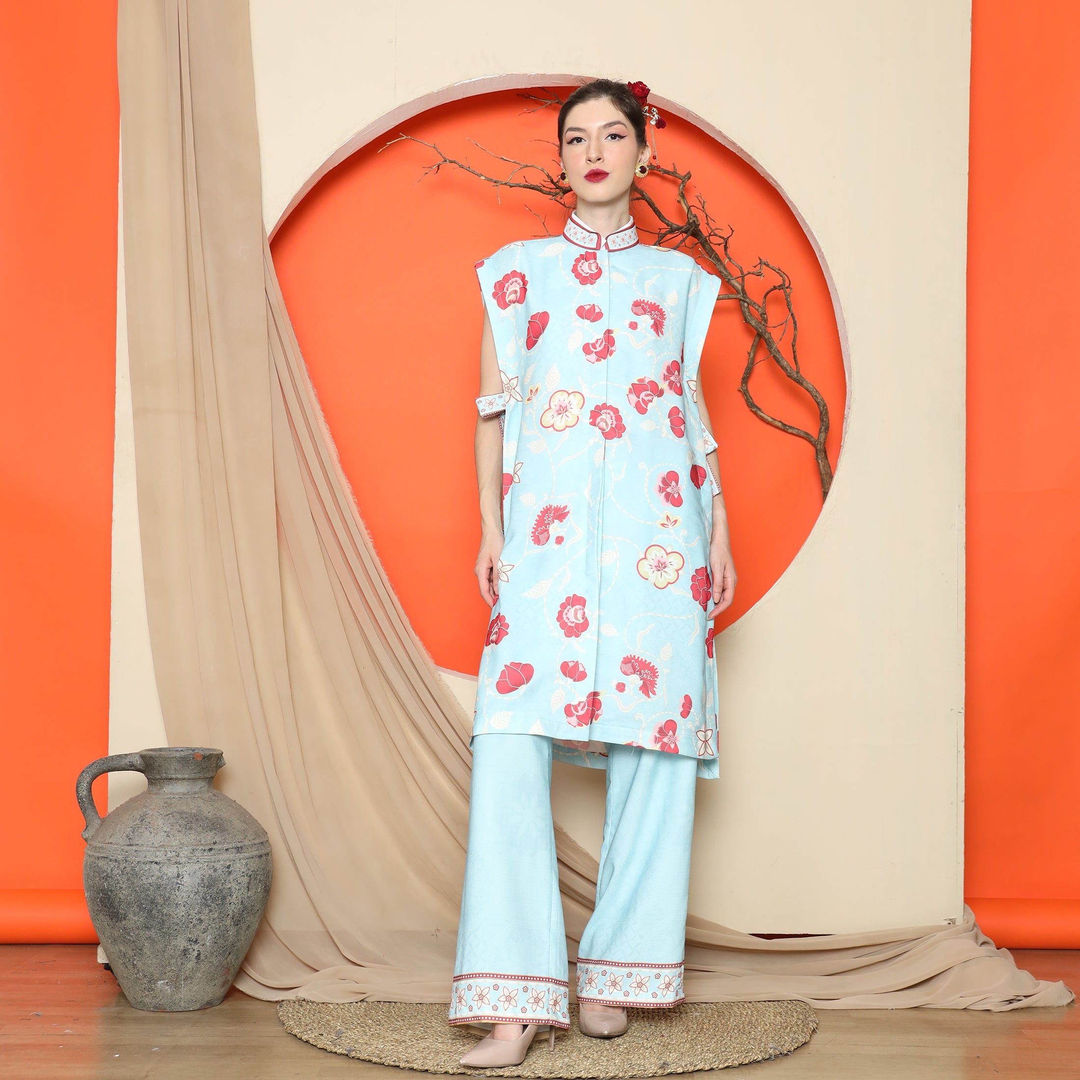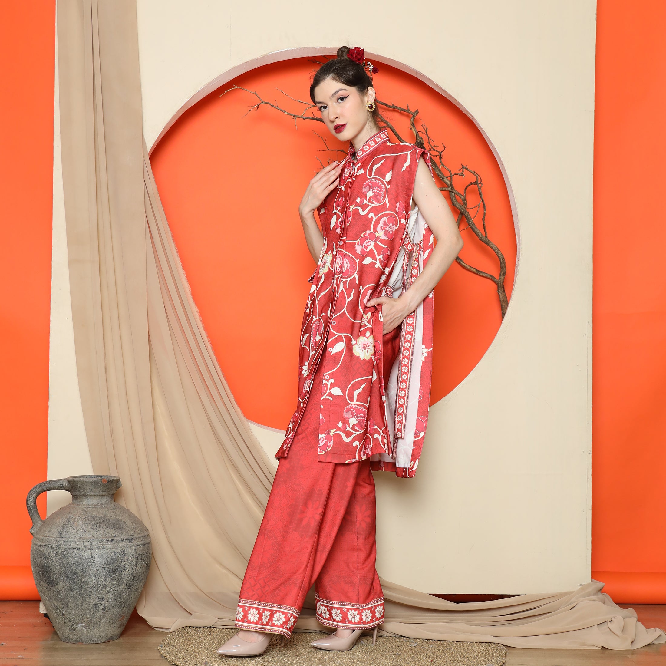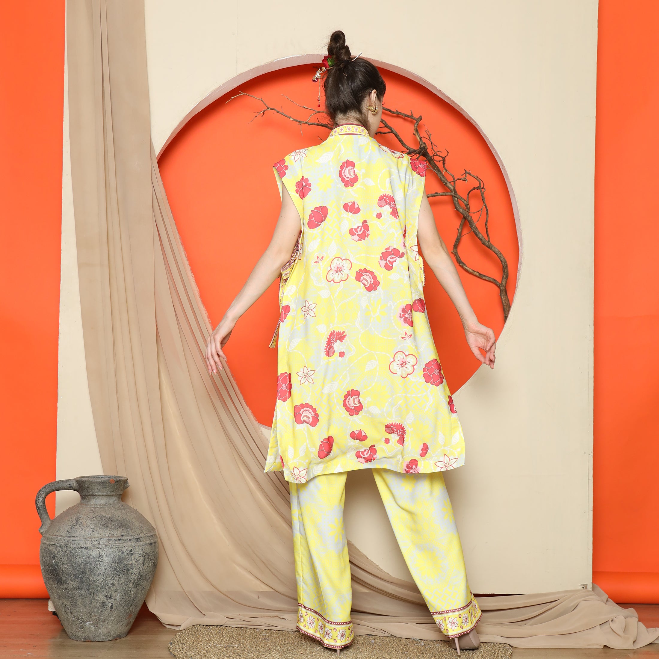 Flower Jacquard Kimono Vest – Timeless Florals with Modern Versatility
