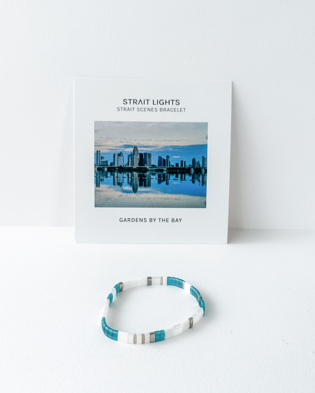 Celebrate Singapore’s iconic skyline with the Gardens By The Bay East Bracelet by STRAIT LIGHTS, a handcrafted piece that captures the city’s picturesque views. This bracelet features tempered glass beads and soft elastic, offering both elegance and comfort for everyday wear.