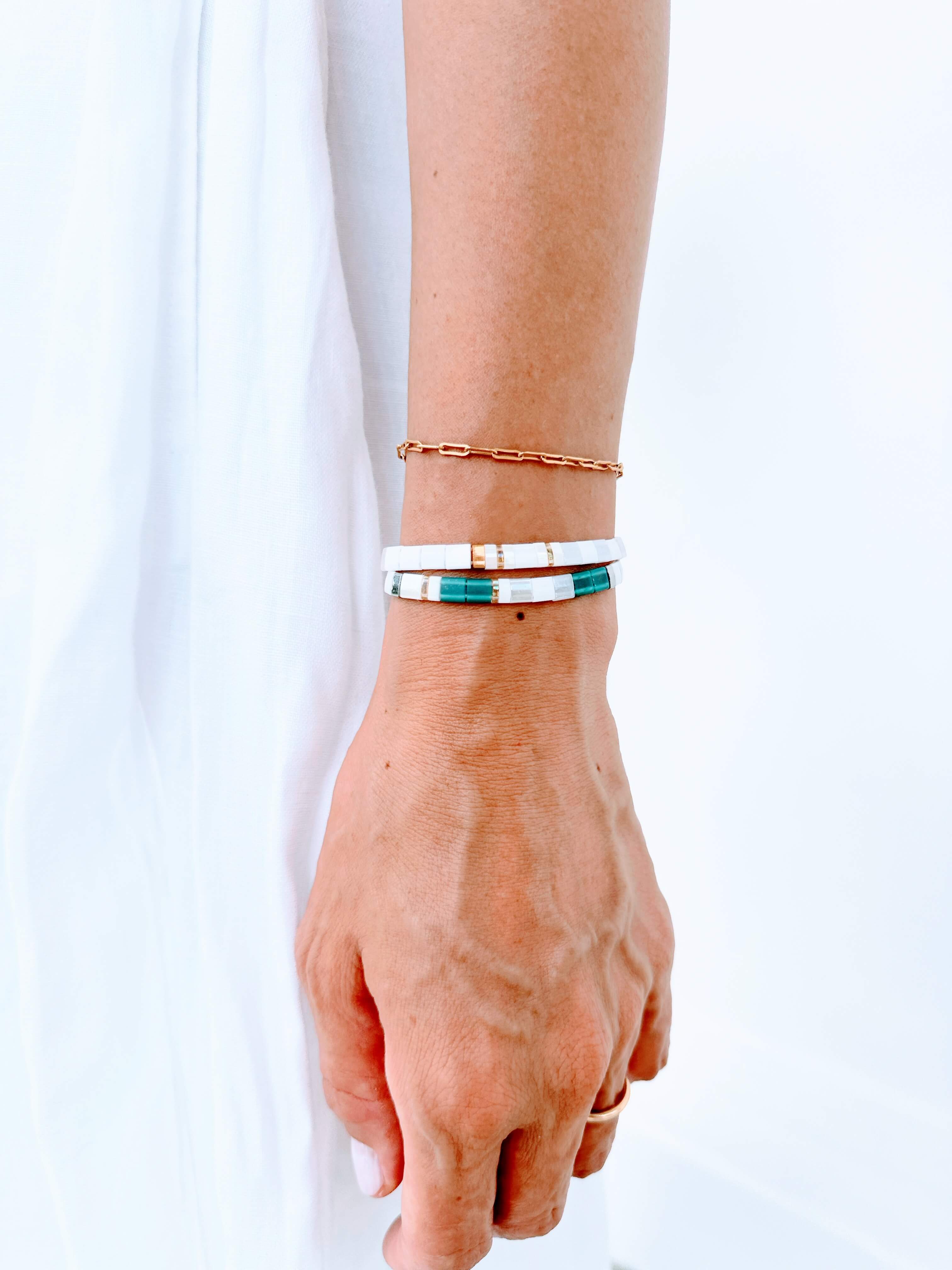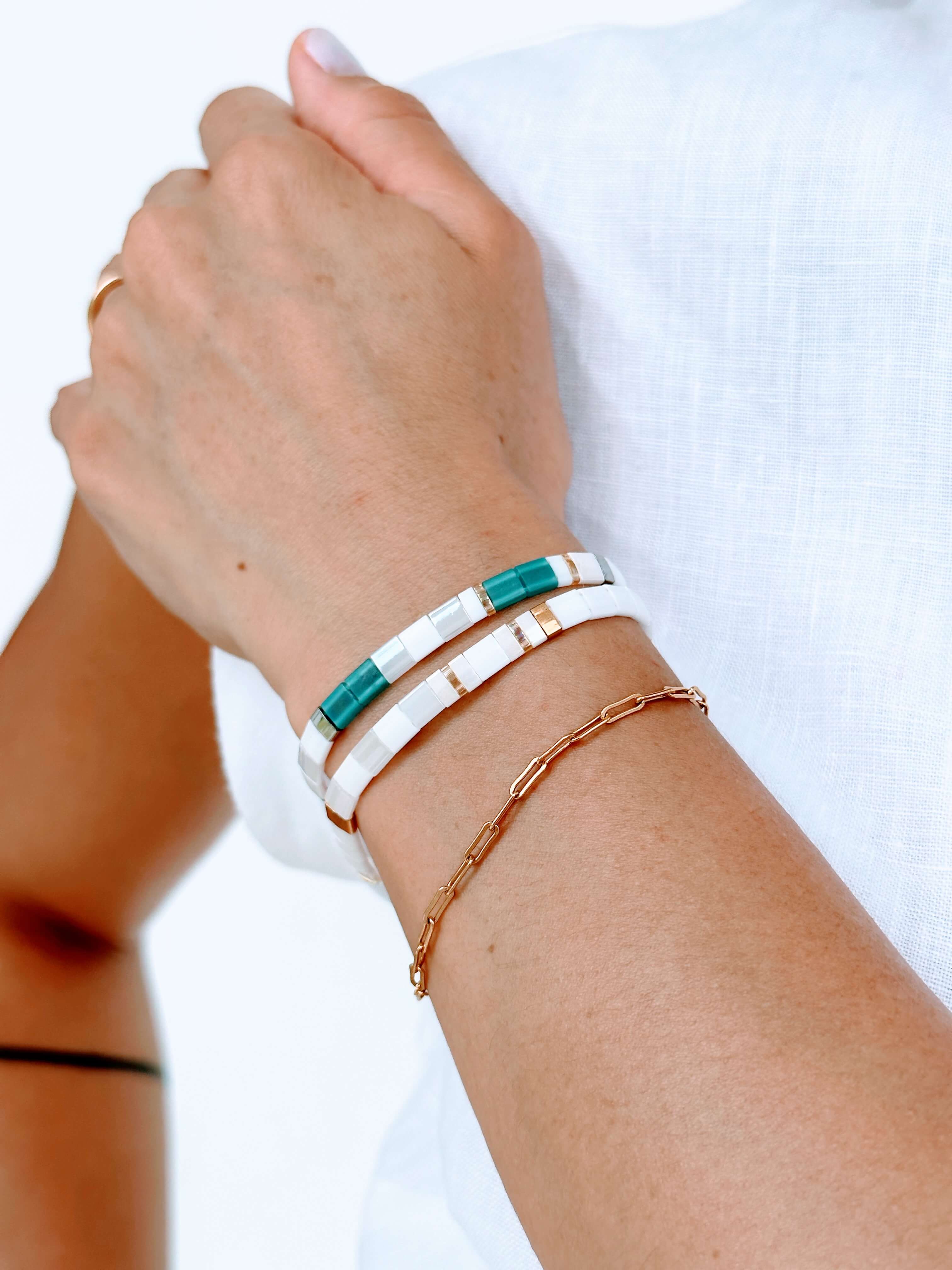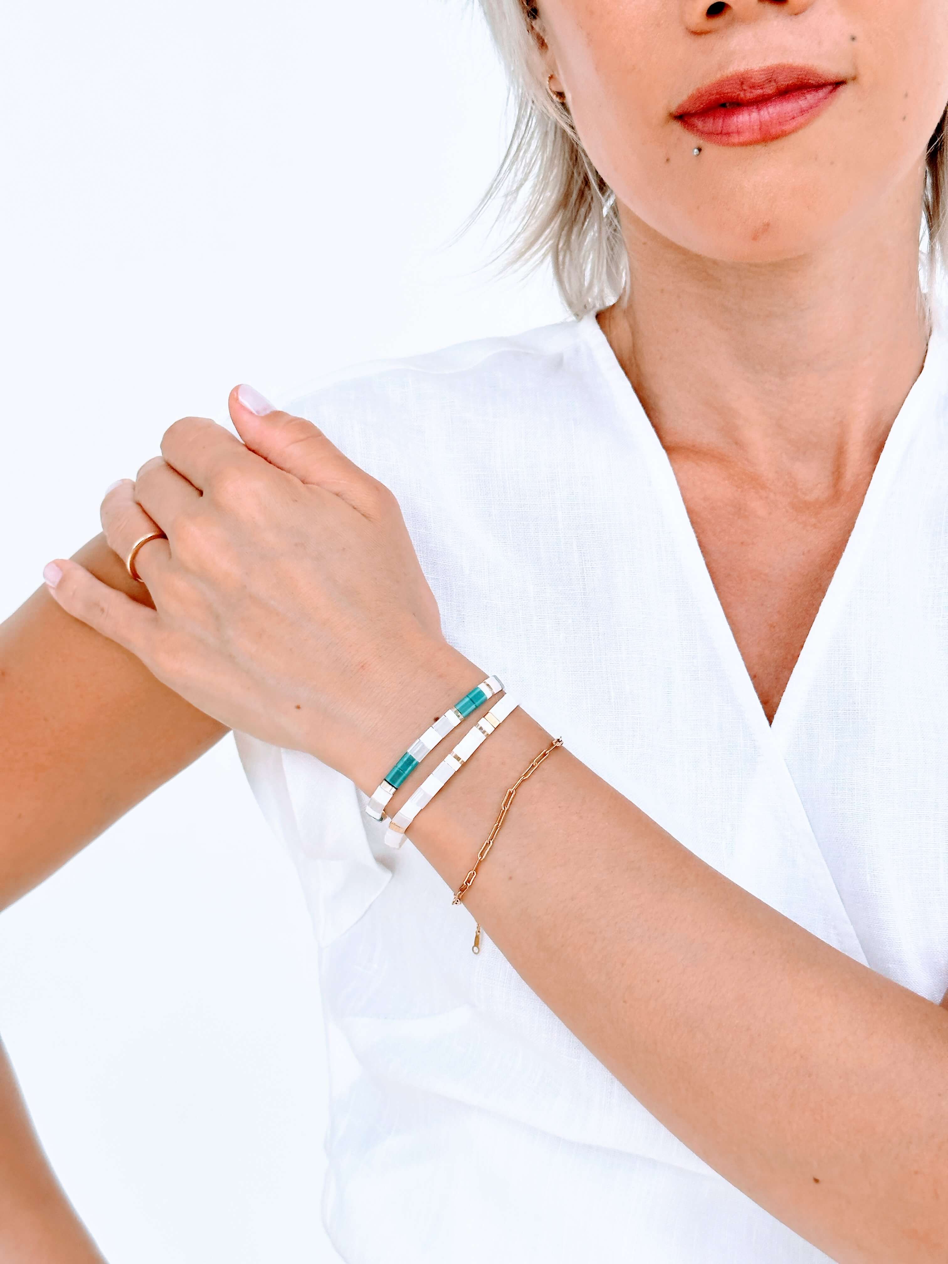 Meticulously crafted in the studio, each bracelet is made to last with high-quality materials. For best results, remove before swimming or showering and avoid contact with creams or fragrances to preserve its lustre.