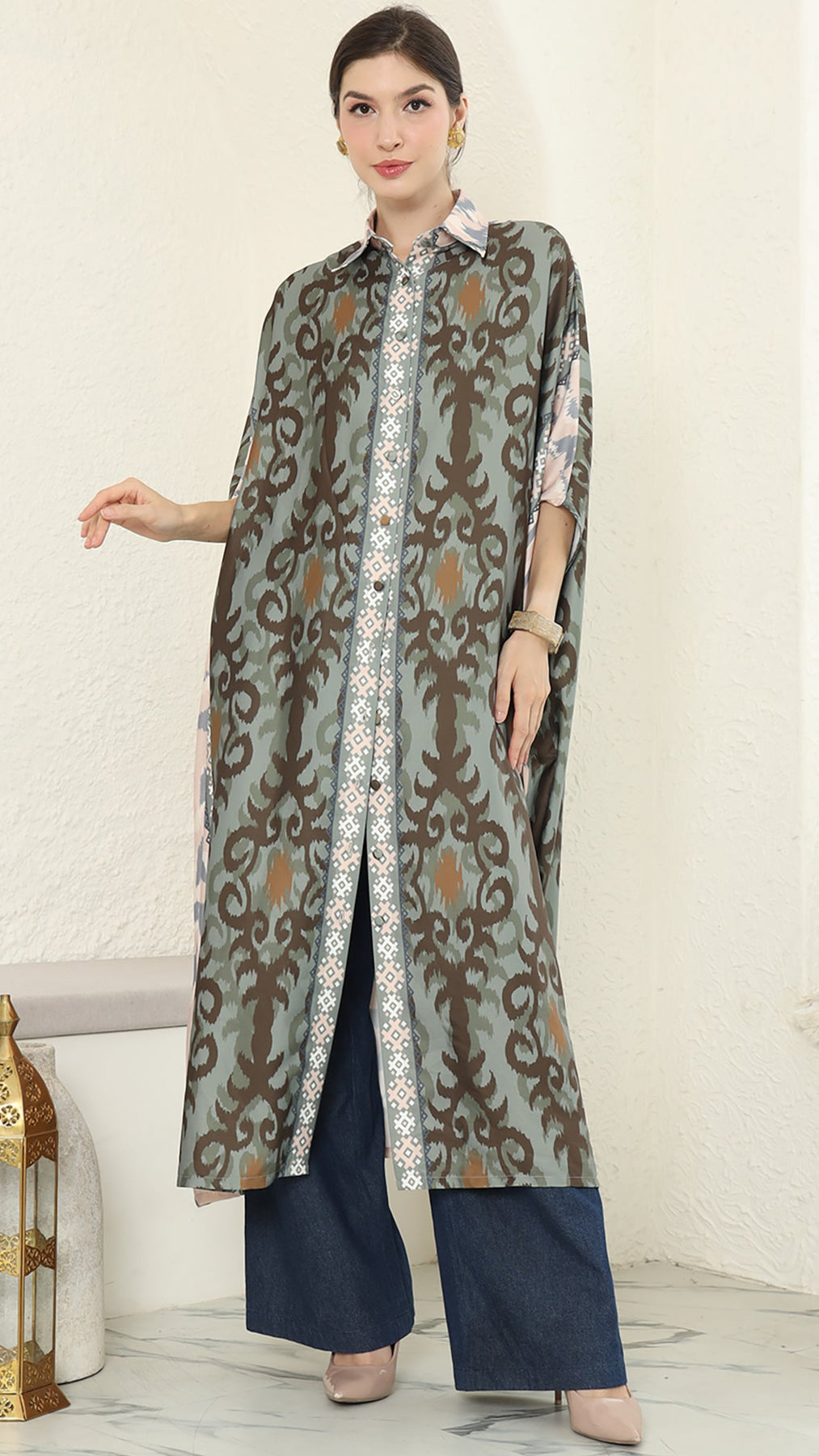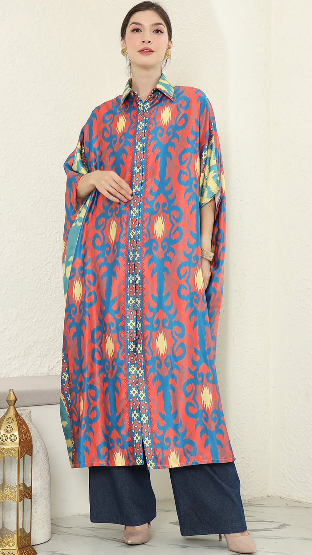 Ikat Button Kaftan – Effortless Glamour in Luxurious Satin