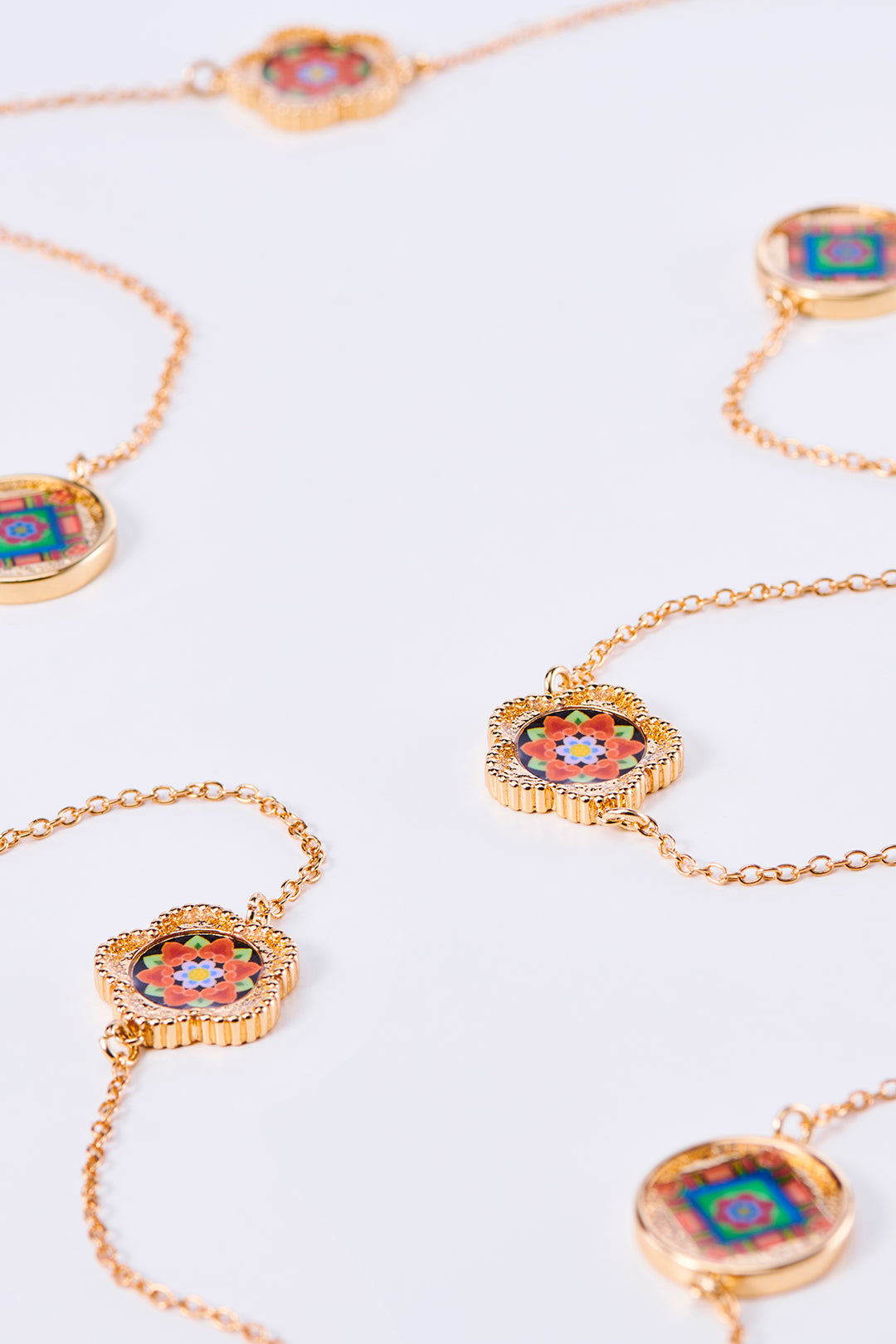 The Korean Dancheong Floral Necklace by RARE BIRD COLLECTION captures the essence of traditional artistry with a modern twist. Inspired by the vibrant dancheong decorative art, this necklace features dainty golden balls that lend a refined, elegant touch to its design. Its 48 cm length offers a graceful drape, making it a standout accessory for those who appreciate cultural heritage and timeless style.Versatile enough for any occasion, this necklace pairs beautifully with both casual and formal outfits. Wear it over a sleek blouse for a sophisticated look or layer it with other pieces to create your own unique style. Its understated luxury complements a wide range of wardrobe staples.