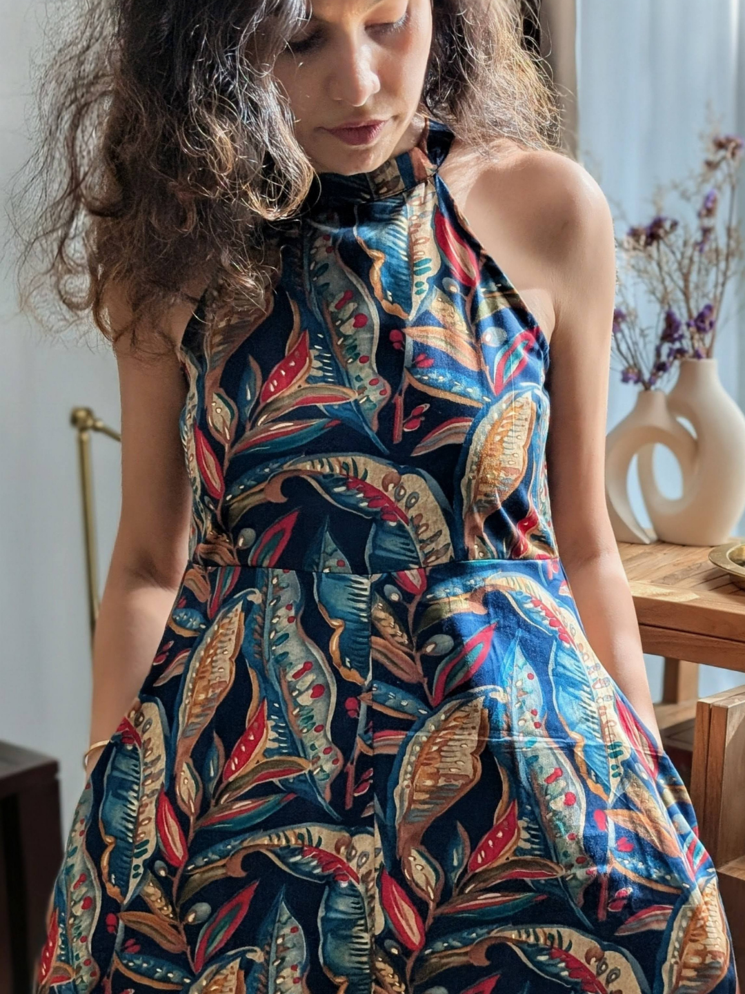 Eden Skyfall Women's Short Halter – Effortless Chic in Midnight Blue Muslin Cotton
