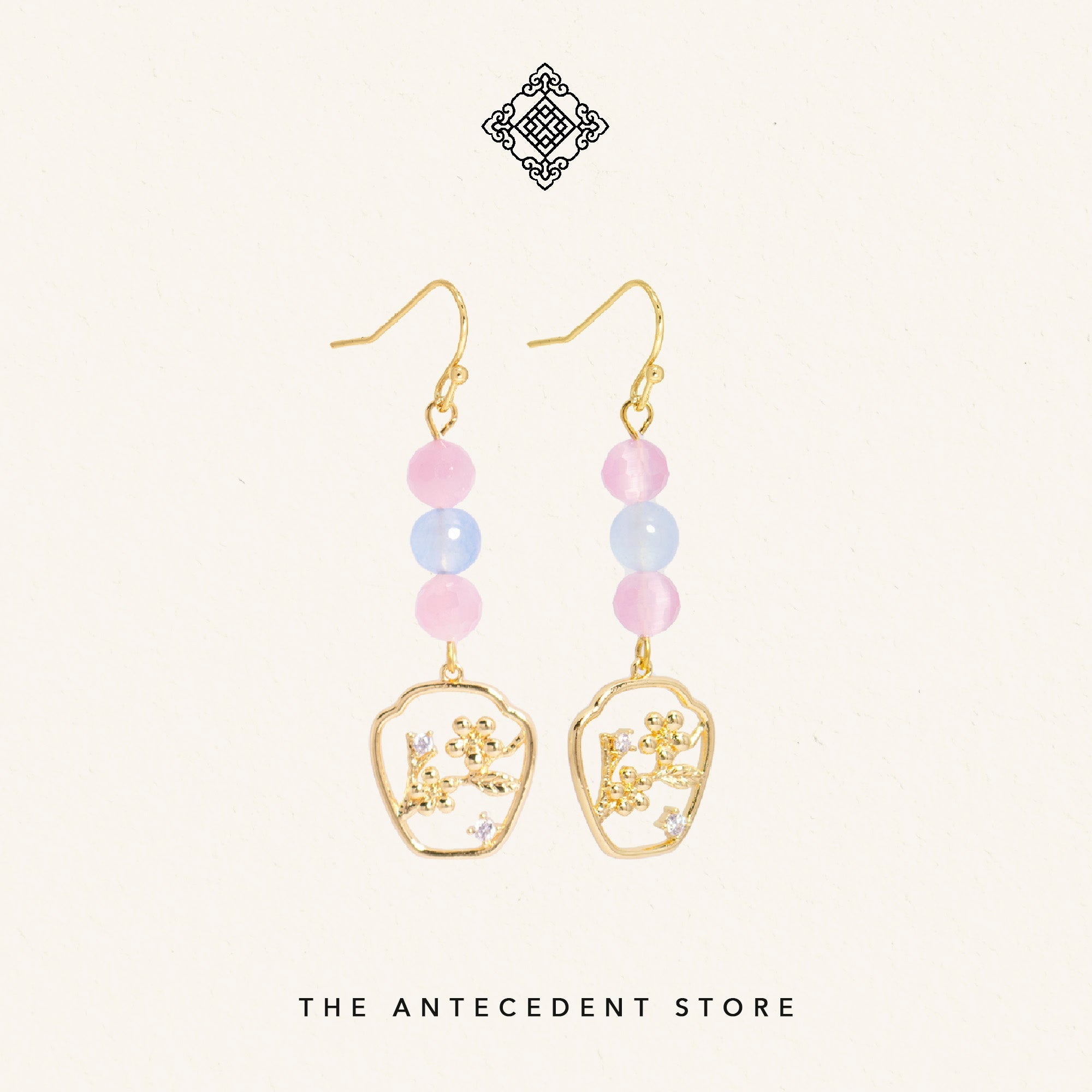 Celebrate renewal and elegance with THE ANTECEDENT STORE Oriental Cherry Blossom Earrings with Crystals, inspired by the symbolic beauty of spring’s first blooms. Faceted rose quartz and aquamarine stones add a refined touch, infusing each piece with meaning and subtle sparkle.These earrings transition effortlessly from day to evening, complementing both casual and formal ensembles. Their delicate design pairs beautifully with other jewellery, making them a versatile addition to your collection.