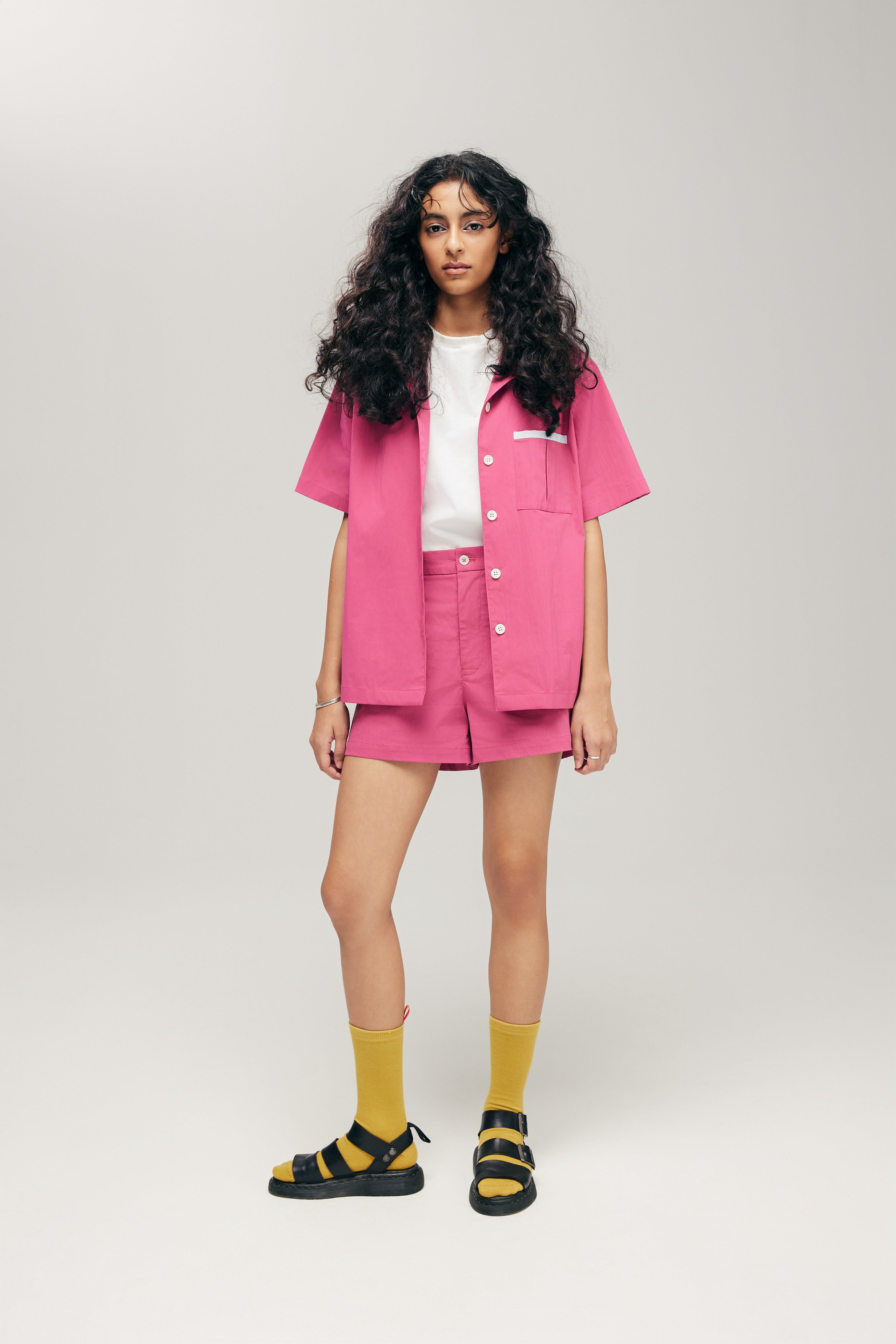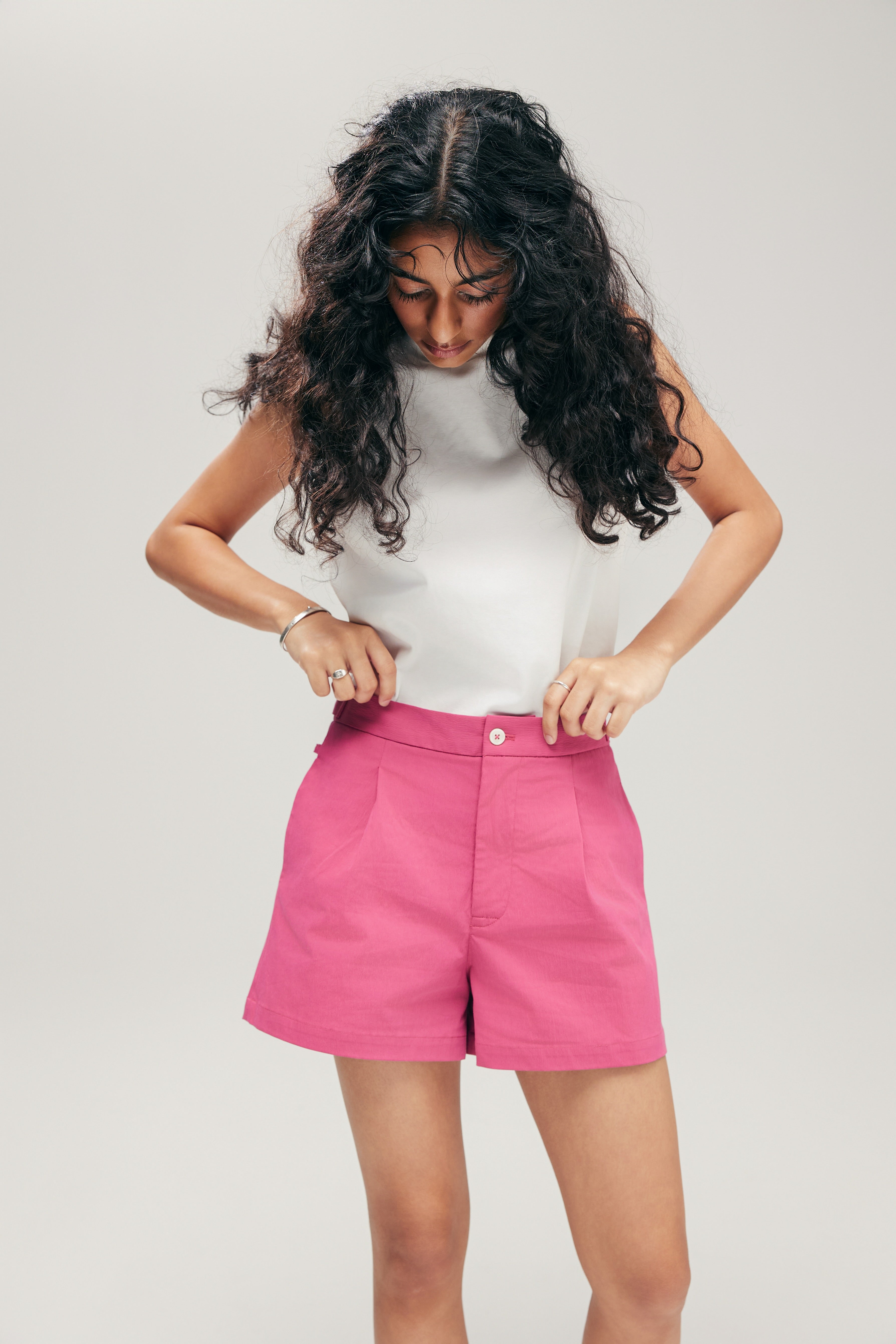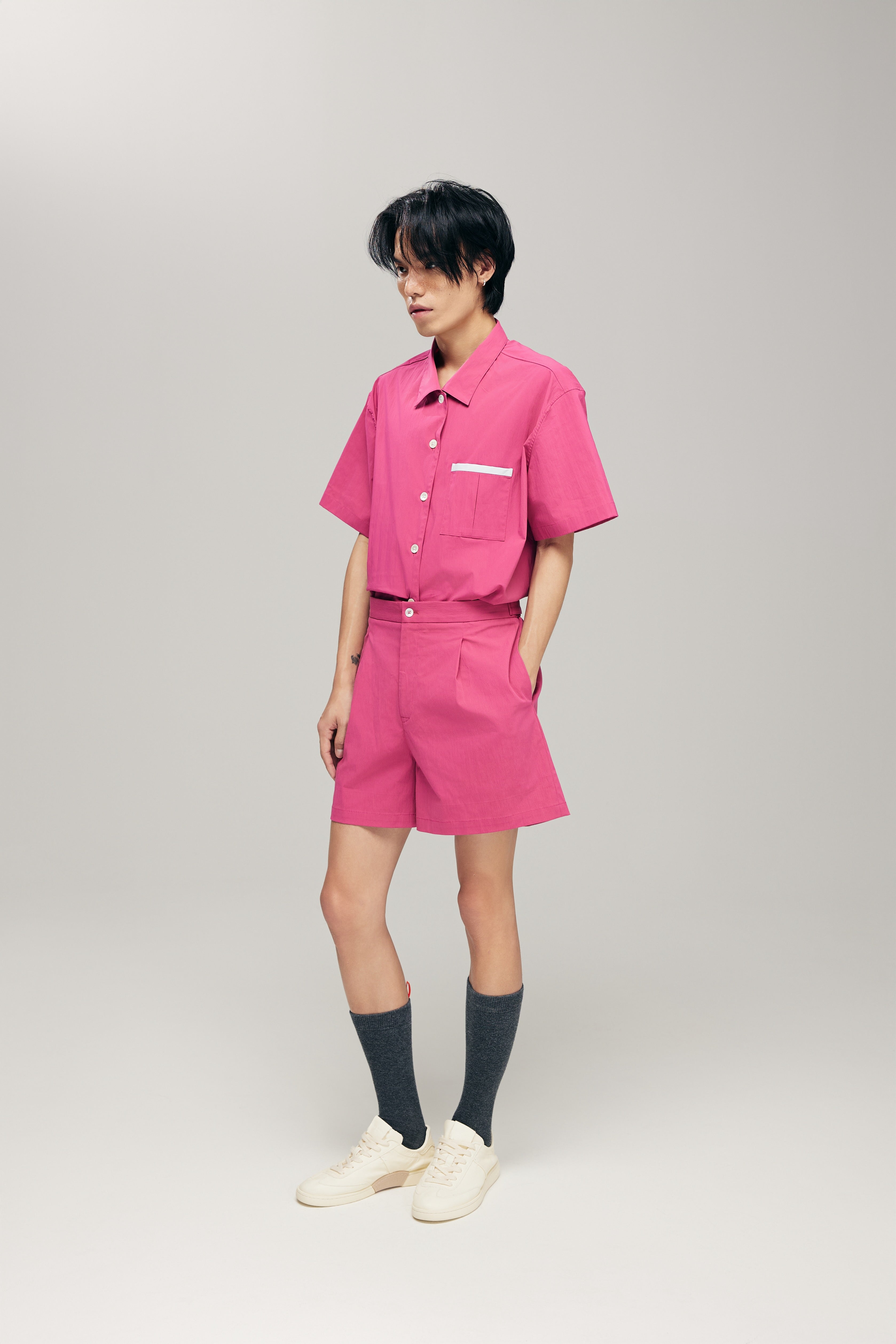 The 3EIGHTH CO Orime Boxer Shorts in Dragonfruit offer a refined take on casual comfort, featuring a distinctive front pleat inspired by traditional men's boxers. Crafted with a straight silhouette, these shorts blend modern tailoring with everyday ease, while functional pockets and a key tab add thoughtful utility.Versatile enough for relaxed weekends or casual outings, these shorts pair effortlessly with your favourite tees or crisp shirts. The vibrant Dragonfruit hue adds a playful pop to your wardrobe, complementing both neutral and bold pieces.