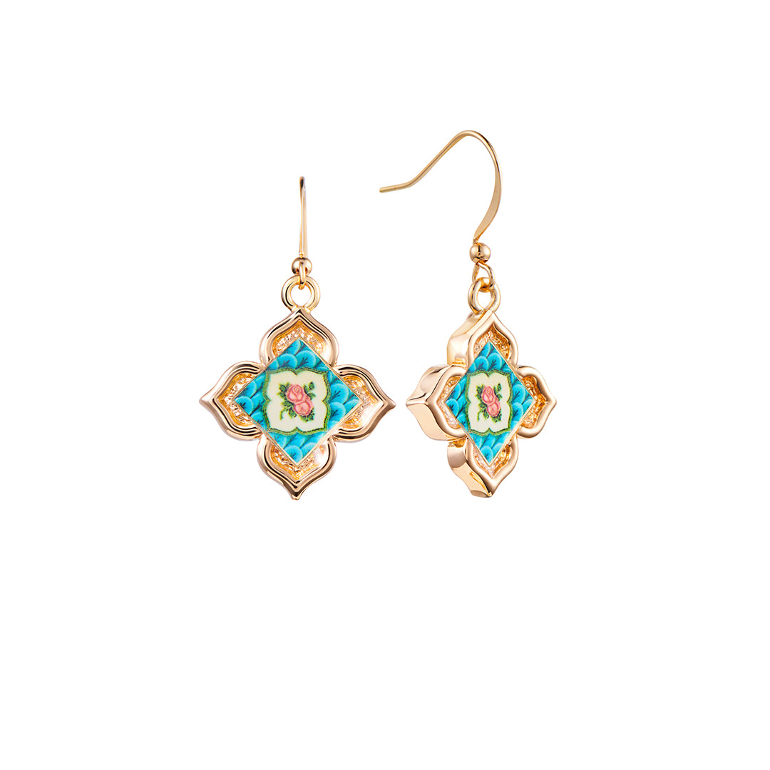 RARE BIRD COLLECTION | Peranakan Floral Drop Earrings - Blue