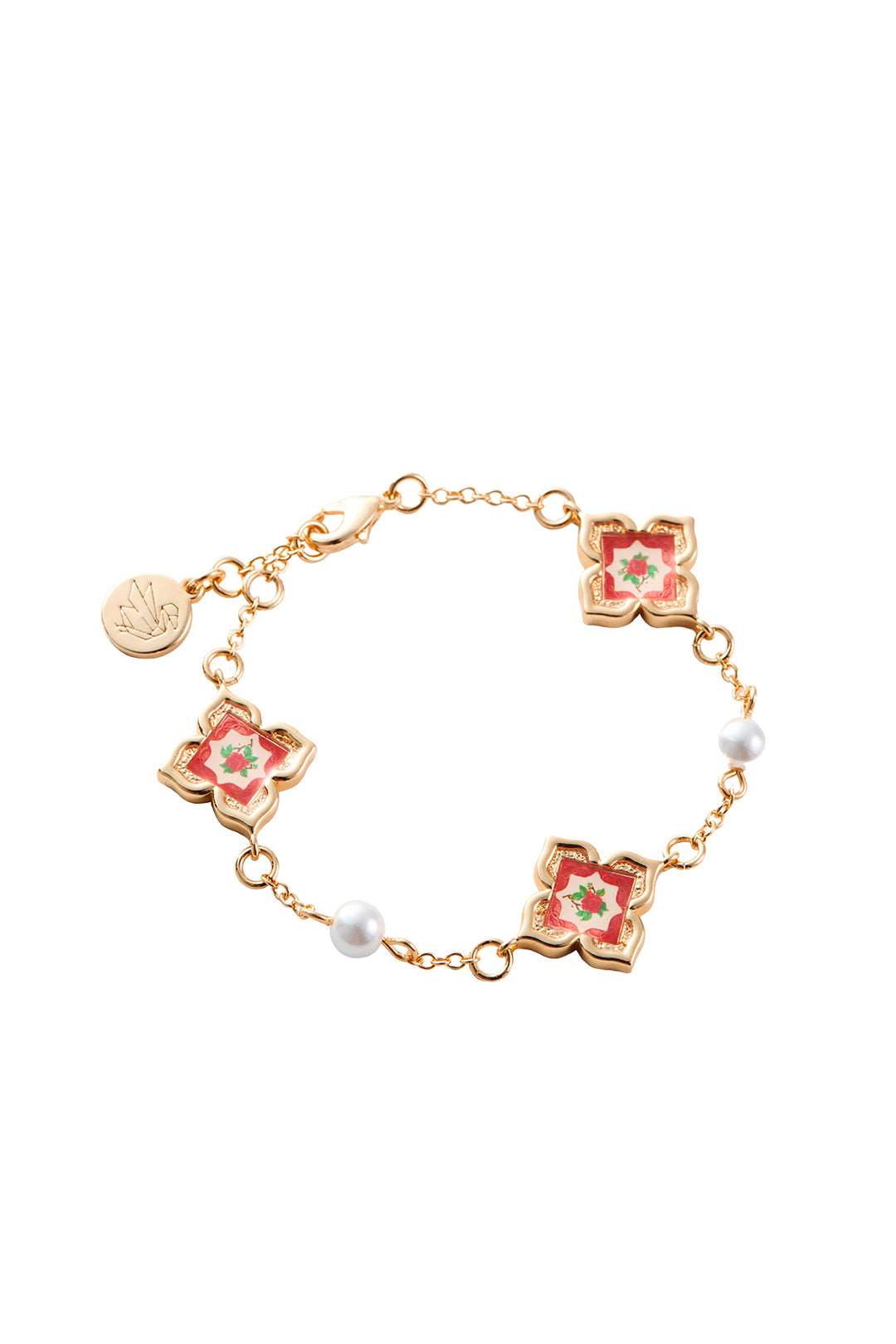 RARE BIRD COLLECTION | Peranakan Floral Pearl Charm Bracelet - Rosy Pink Gold