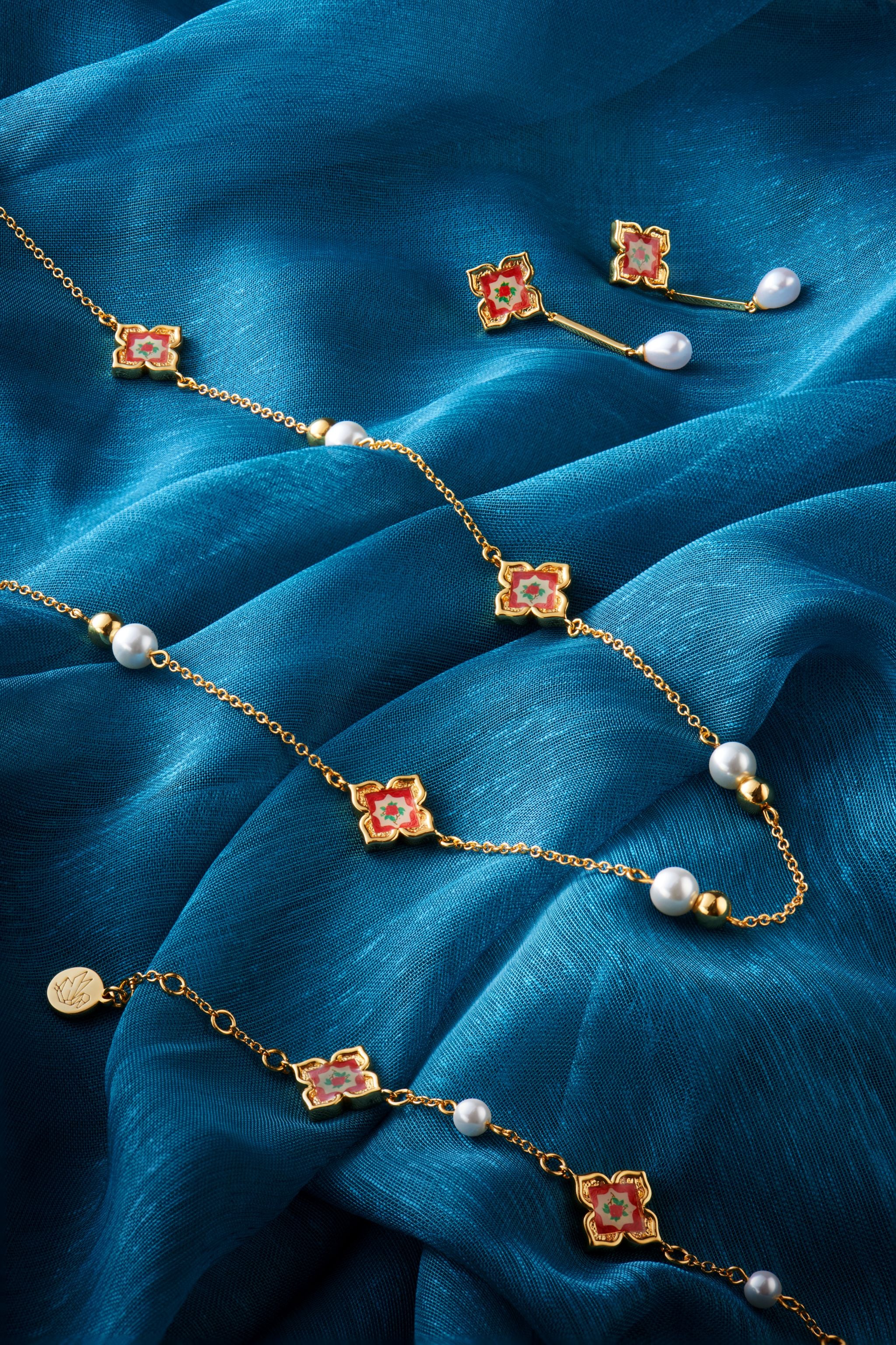 The Peranakan Floral Pearl Charm Bracelet in Rosy Pink Gold by RARE BIRD COLLECTION is a refined statement piece that fuses heritage artistry with modern elegance. Intricately crafted pendants framed in 24K gold showcase iconic Peranakan floral motifs, while lustrous pearls lend a soft, graceful accent to the bold design.This bracelet transitions effortlessly from day to night, making it suitable for both casual gatherings and formal occasions. Its versatile style complements a range of outfits, adding a touch of sophistication to your existing jewellery collection.