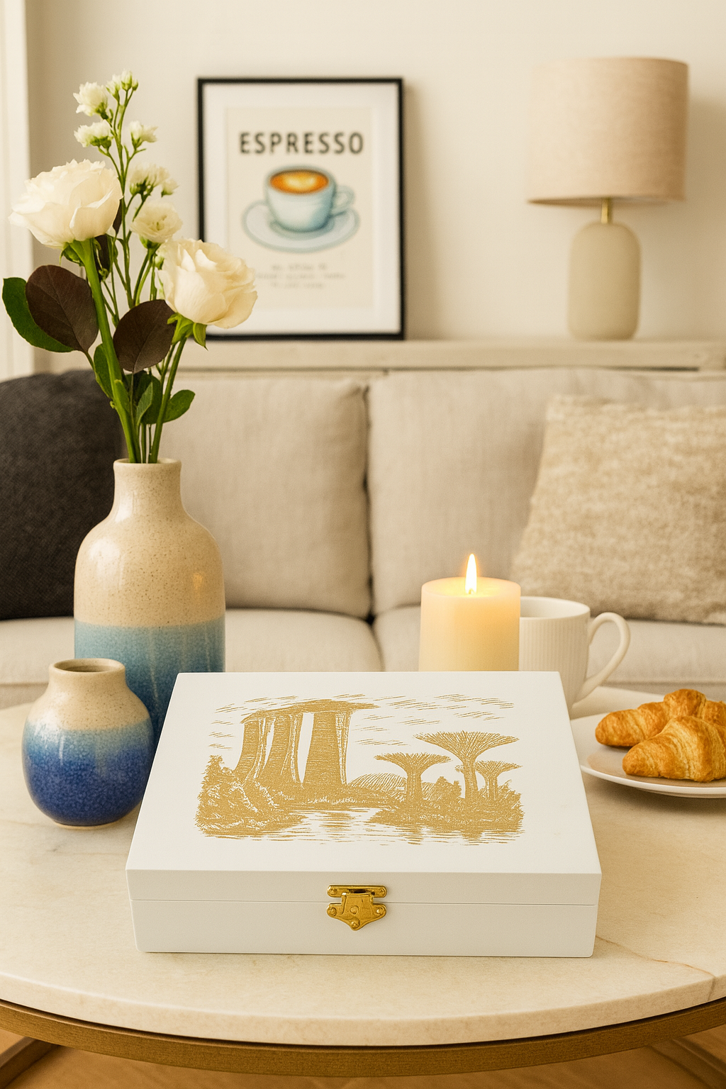Celebrate Singapore’s vibrant spirit with the CITY OF LIGHTS (MARINA BAY) Teabag Box by PHOTO PHACTORY. This striking piece features a bold design inspired by the city’s iconic skyline, capturing the energy and modernity of Marina Bay.Perfect for storing your favourite teas, this box adds a touch of contemporary elegance to your kitchen or dining area. Its distinctive look also makes it a thoughtful gift or a stylish accent for your home collection.