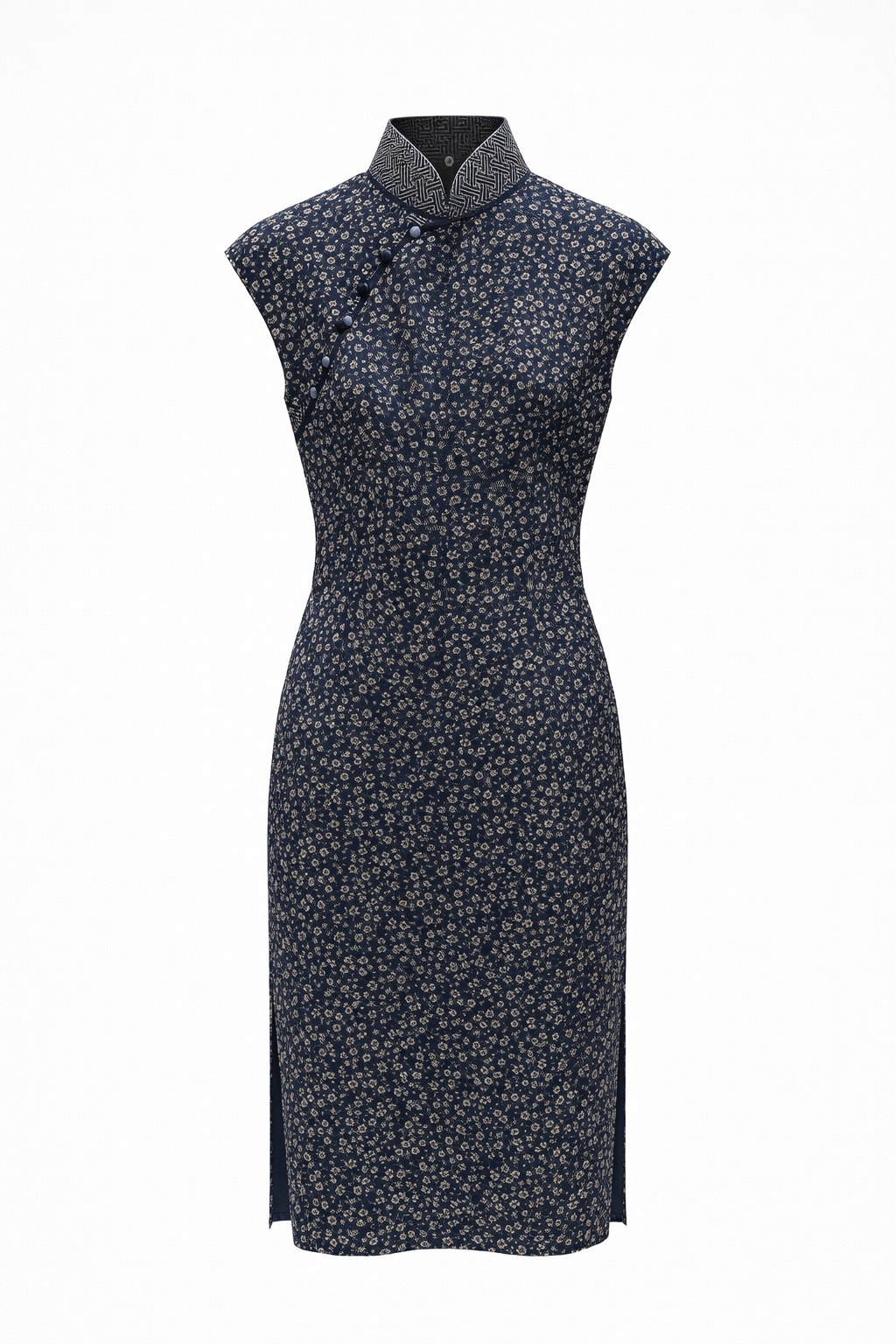 Sleeveless modern cheongsam silhouette