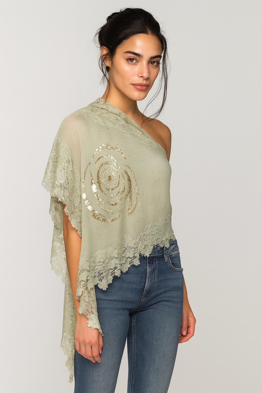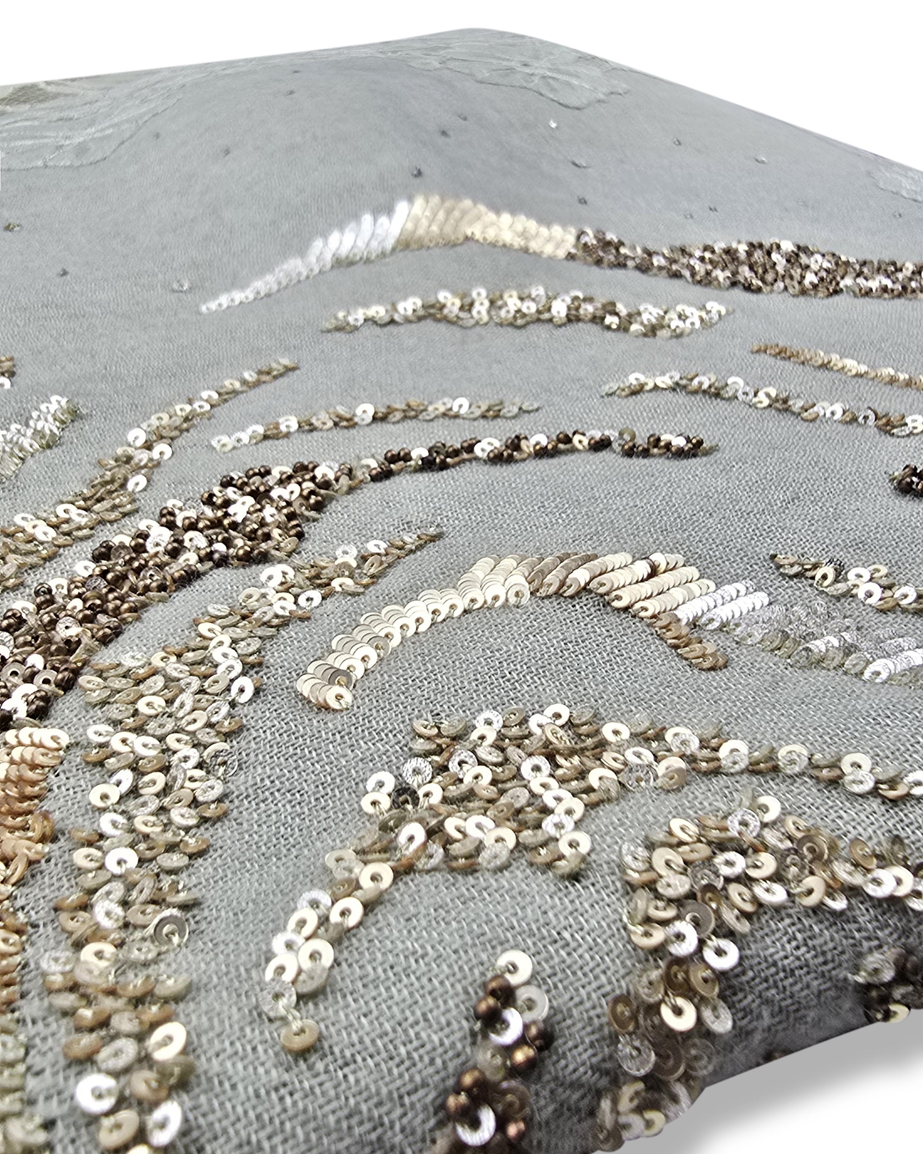 Elevate your wardrobe with the QUEENMARK AN EMB abstract rose shawl, crafted from a luxurious cashmere silk blend. This piece stands out with its delicate pastel tones, abstract sequined rose motif, and refined lace detailing, offering a sophisticated touch to any ensemble.Drape it over your shoulders for a graceful evening look or layer it with casual outfits for a hint of elegance during the day. Its versatile design complements both modern and classic styles, making it a seamless addition to your collection.