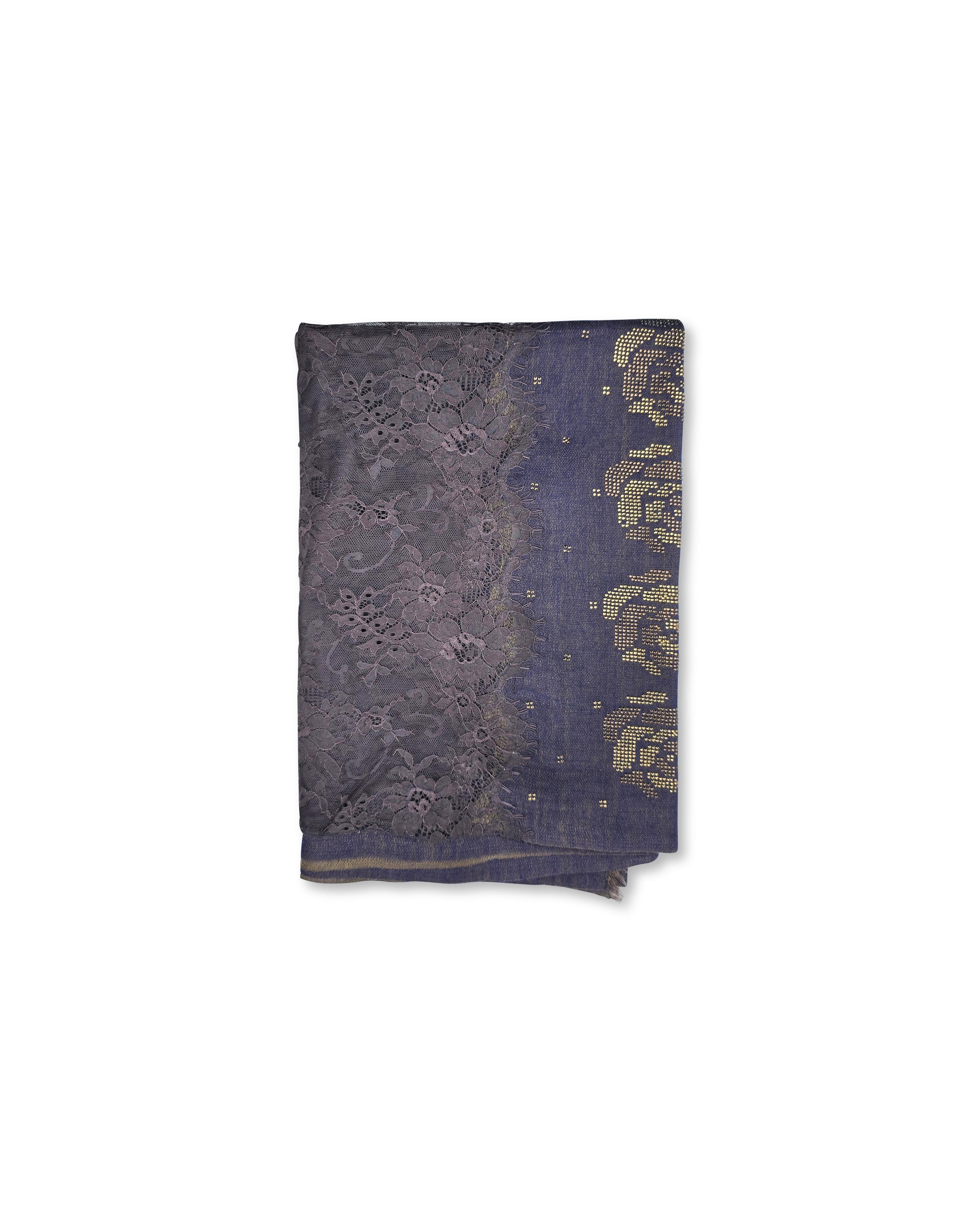 QUEENMARK’s AN Zari Work Roses Zari Lace shawl brings together the richness of a silk wool blend with intricate golden zari rose motifs, offering a refined statement piece that exudes both tradition and contemporary elegance.Drape it over your shoulders for formal gatherings, or layer it with casual ensembles to elevate everyday looks. Its versatile design complements both classic and modern wardrobes, making it a timeless addition to your collection.