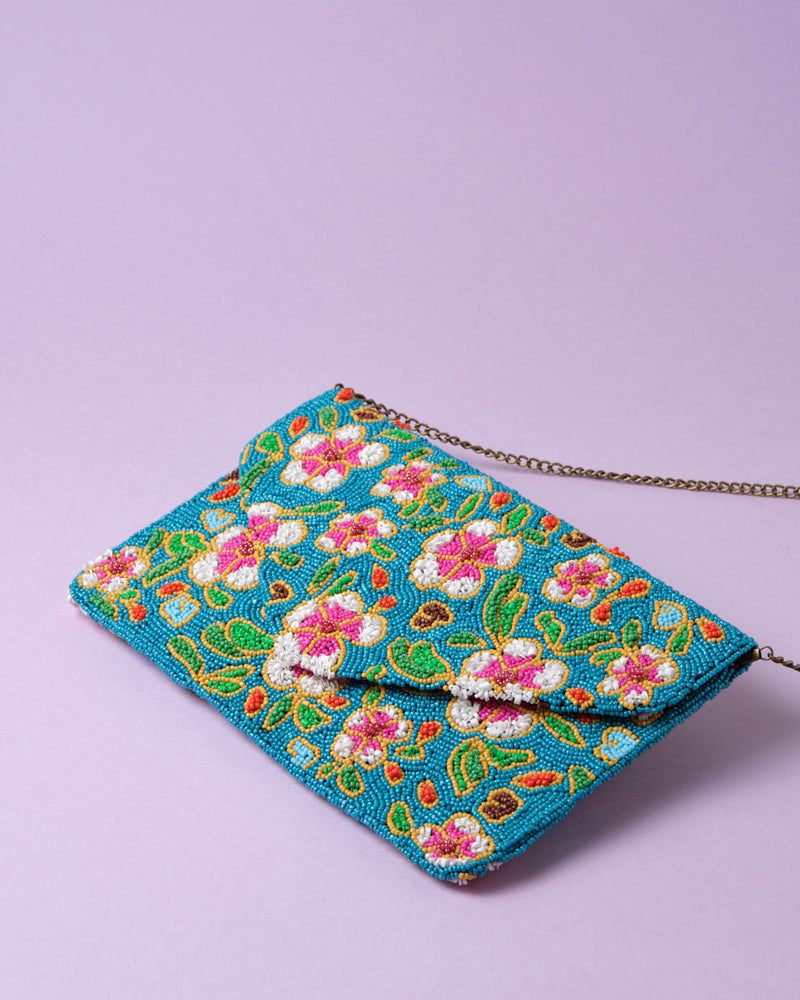With Nyonya porcelain production ending after WWII, remaining pieces are rare and revered. This clutch preserves the spirit of that artistry, reimagined bead by bead.
