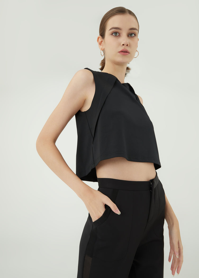 Elevate your everyday wardrobe with the REVE Top by AS INTENDED, a modern cropped silhouette crafted from eco-friendly REPREVE® recycled polyester. Its distinctive boat neck, inverted dart details, and keyhole back closure offer a refined yet contemporary edge, while four-way stretch and moisture-wicking properties ensure all-day comfort.Versatile enough for both casual and polished looks, this sleeveless top pairs effortlessly with high-waisted trousers, skirts, or layered under blazers. Its clean lines and neutral design make it a seamless addition to any existing collection.