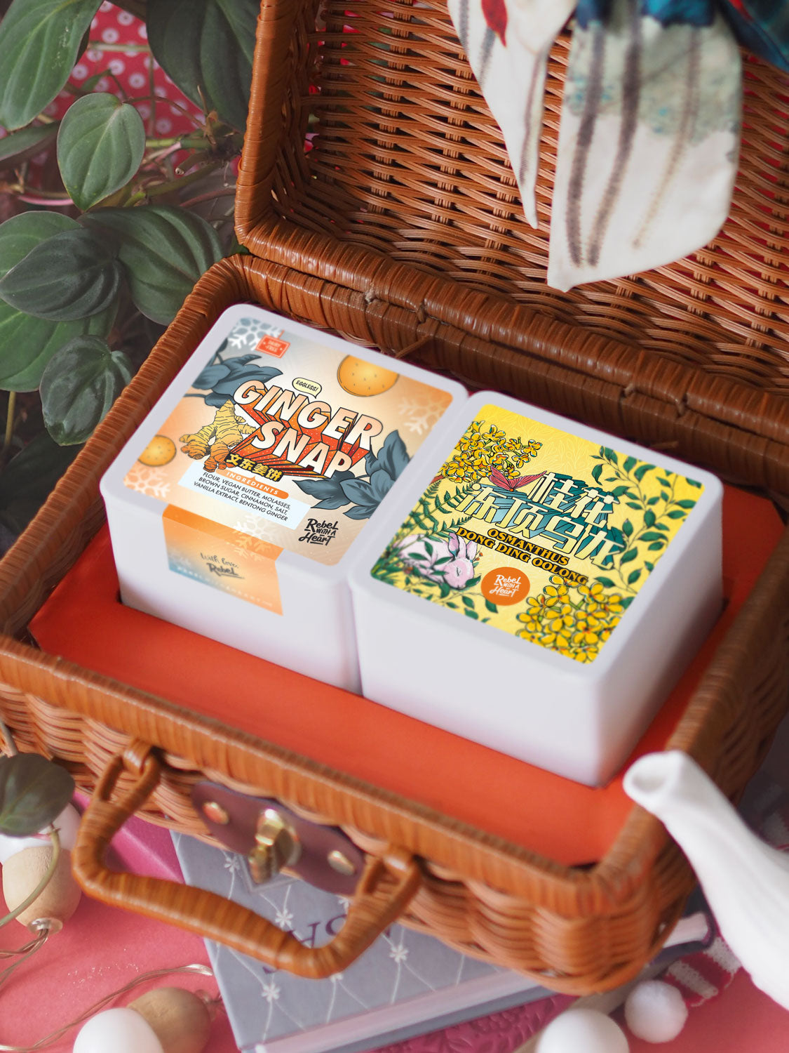 Celebrate the festive season with the Christmas Gift Set: Gingersnap + Osmanthus Oolong Tea by RWAH CONFECTIONS, elegantly presented in a reusable basketry case. This thoughtfully curated duo combines classic holiday flavours with artisanal craftsmanship, making it a standout gift for any occasion.