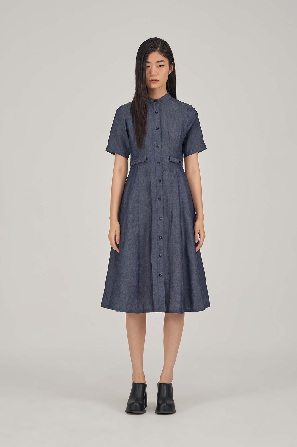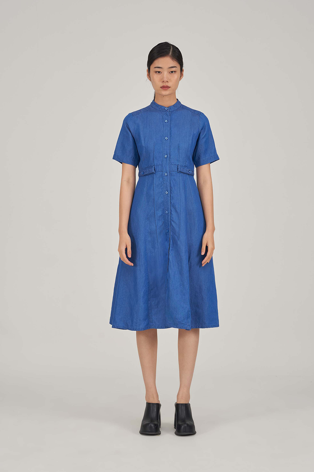 The SABRINAGOH Kevith Denim Shirt Dress is a refined wardrobe staple, crafted from 100% sustainable Tencel™ for a soft, fluid drape. Its flattering fit-and-flare silhouette and fixed belt detail create a polished, waist-defining look, while subtle panel cuts add structure and movement.Effortlessly versatile, this maxi-length dress transitions from casual daywear to elevated evening style. Pair it with sneakers for a relaxed outing or dress it up with heels and statement accessories. The classic design complements a range of existing wardrobe pieces.