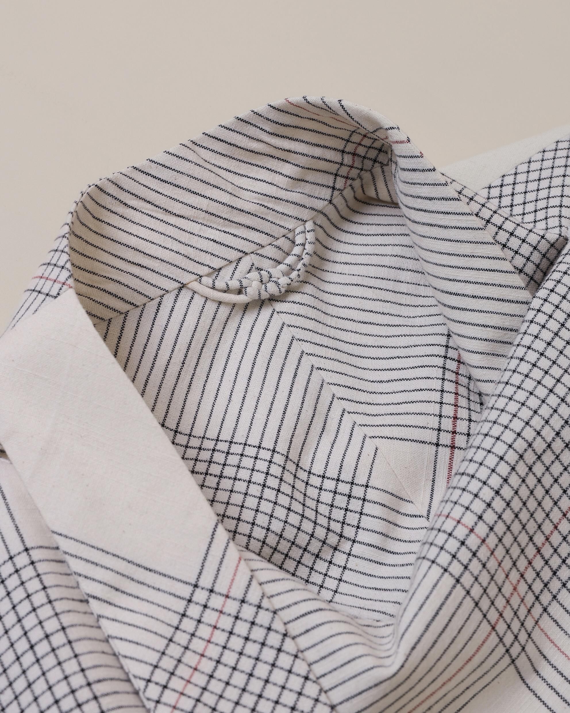 The SELAH - The Pertiwi Kebaya by SUKKHA CITTA is a sculptural reinterpretation of Indonesia’s iconic forms, blending the refined elegance of the kebaya with the structured lines of the beskap. Its limited edition fabric features a striking check pattern in naturally dyed black and raw cotton white, accented by a single red line—a thoughtful detail that symbolises connection and individuality.Designed for versatility, this piece offers 4-in-1 styling options: wear it wrapped, tied at the front, belted at the waist, or open as a layering piece. Its adaptable silhouette transitions seamlessly from ceremonial occasions to effortless everyday wear, complementing both modern and traditional wardrobes.