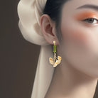 Celebrate timeless elegance with The Antecedent Store Ginkgo Leaf Earrings, where delicate ginkgo motifs meet the refined beauty of Nephrite Jade. Each earring features a bamboo-shaped jade accent, blending symbolic meaning with sophisticated design for a truly distinctive accessory.These earrings transition effortlessly from day to evening, adding a graceful touch to both casual and formal ensembles. Their versatile style complements a range of jewellery collections, making them a thoughtful addition to any wardrobe.
