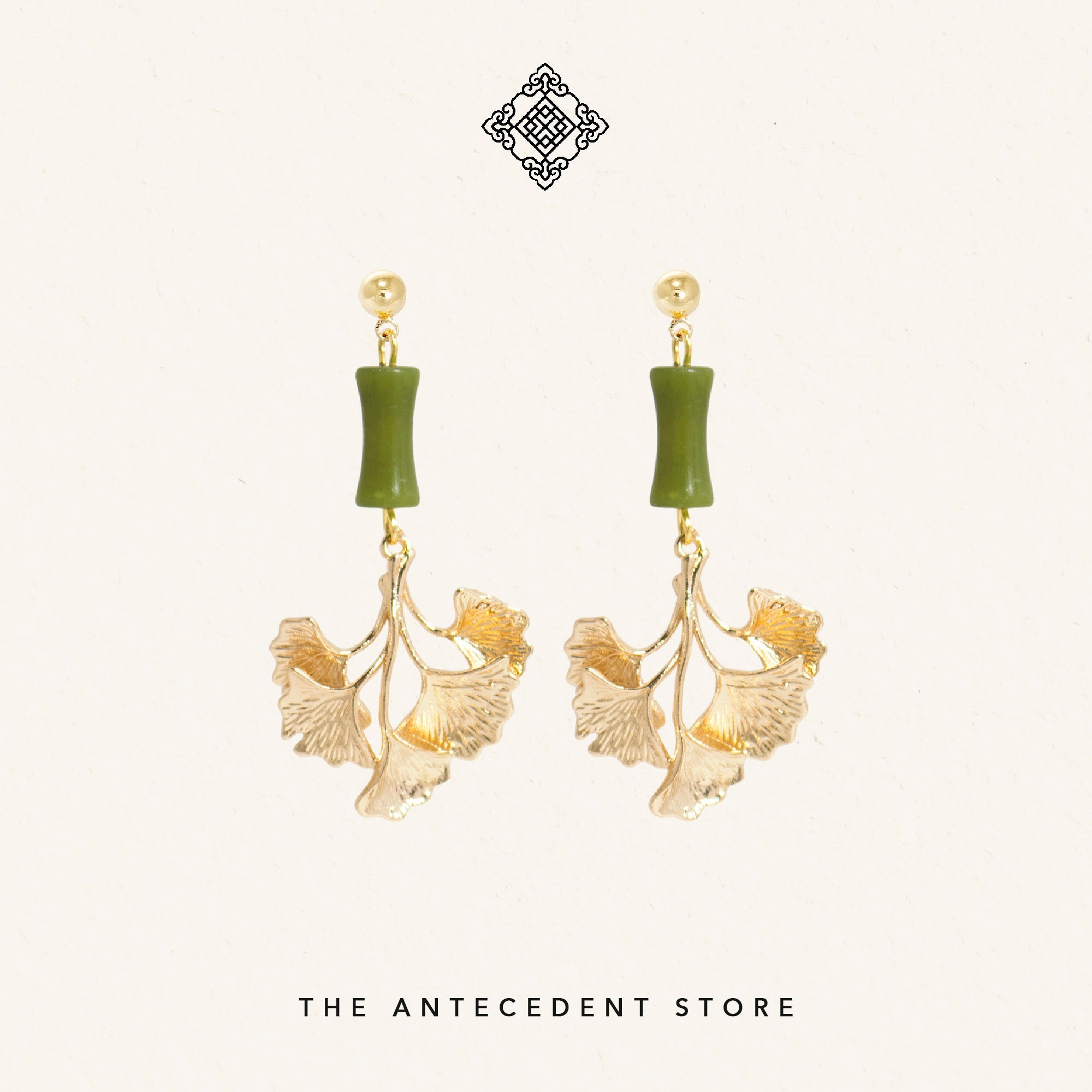 The Antecedent Store Ginkgo Leaf Earrings – Timeless Symbolism in Artful Jade