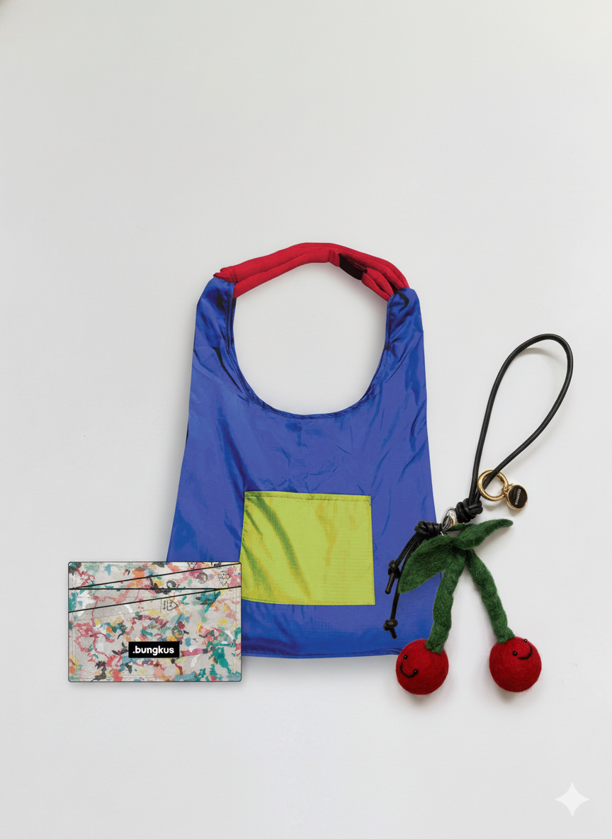 This bundle features WU HAUS’ Wool Bag Charm (Pre-Order), .bungkus’ Card Wallet, and The Everyday Club’s Not Just Any Recycle Bag (Blind Box) — a perfect mix of form and function for those who live life in motion.