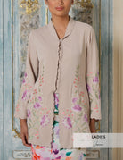 - Delicate floral embroidery placed along the hem and sleeves